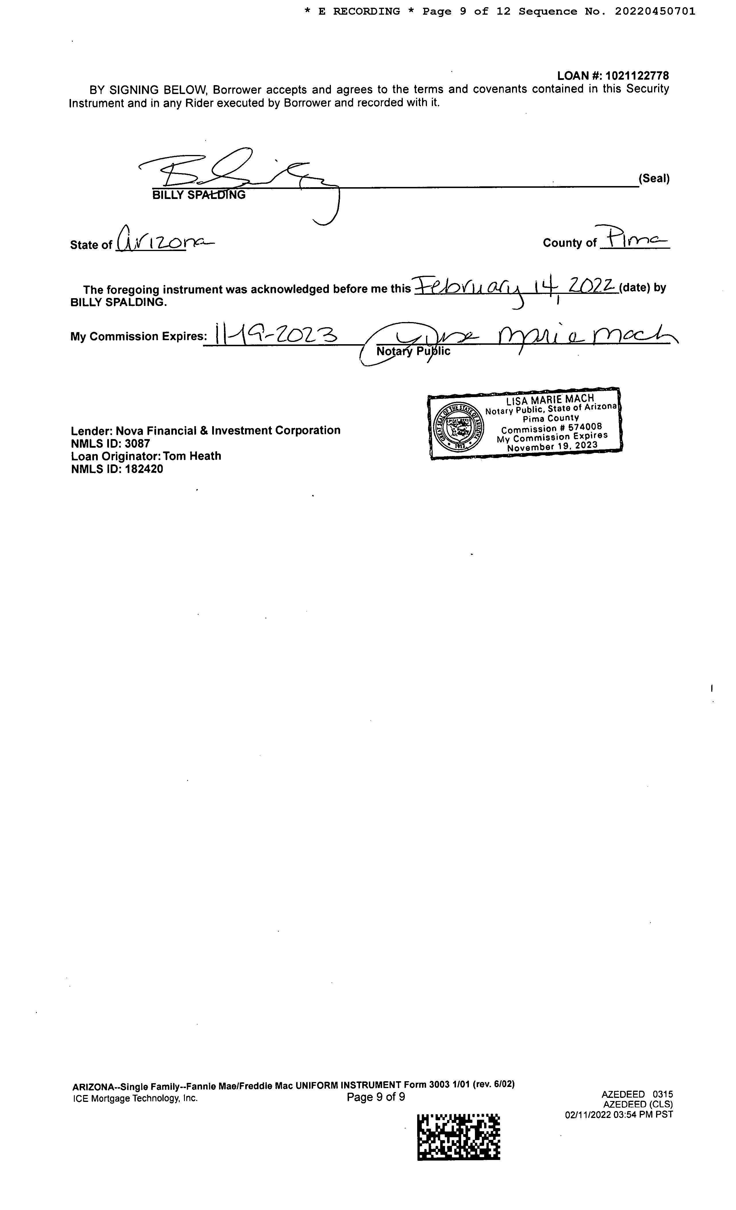 + FIRST AMERICAN TITLE, FC0, LMRA PIMA, AZ