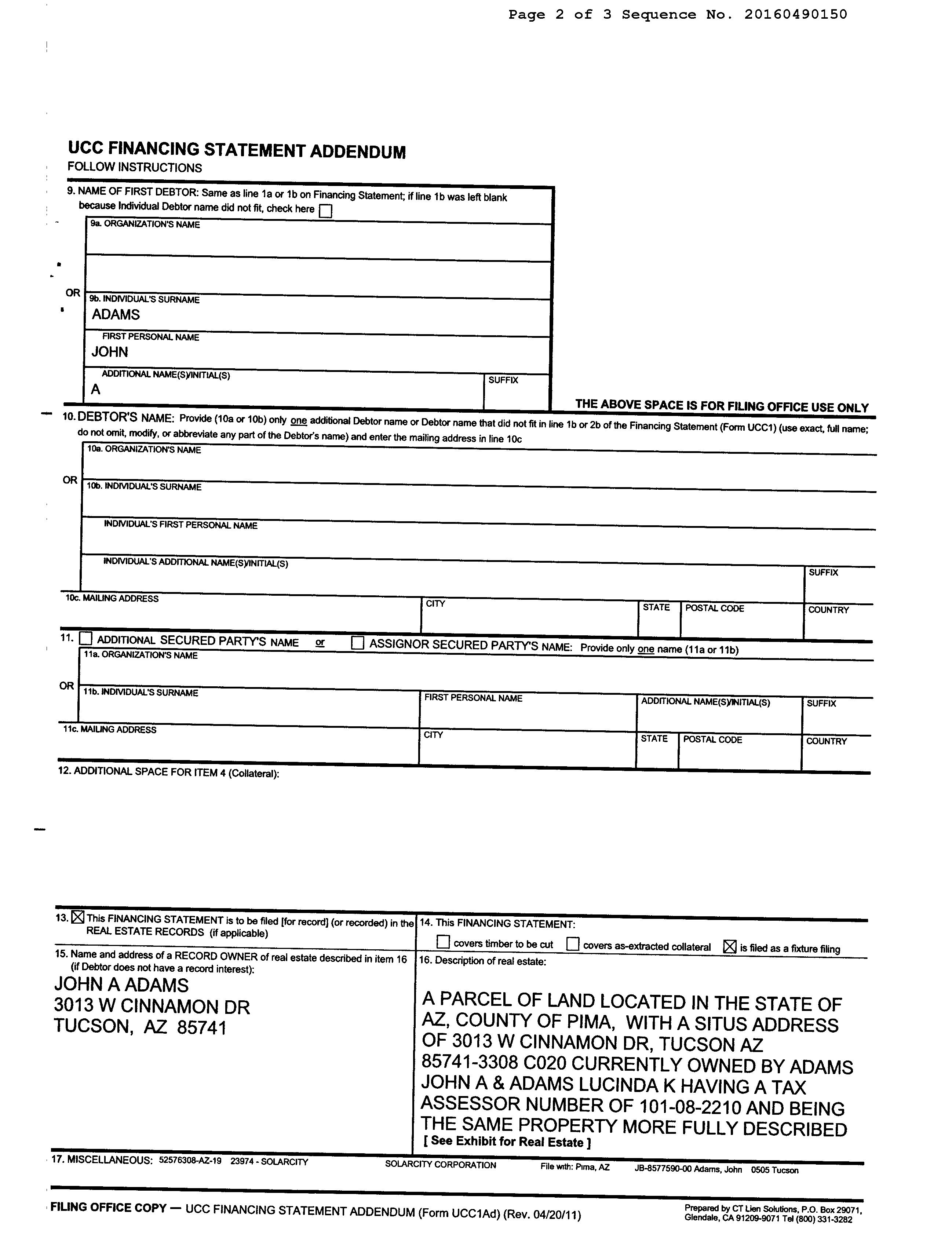 Owner Name : Adams John A / Adams Lucinda K