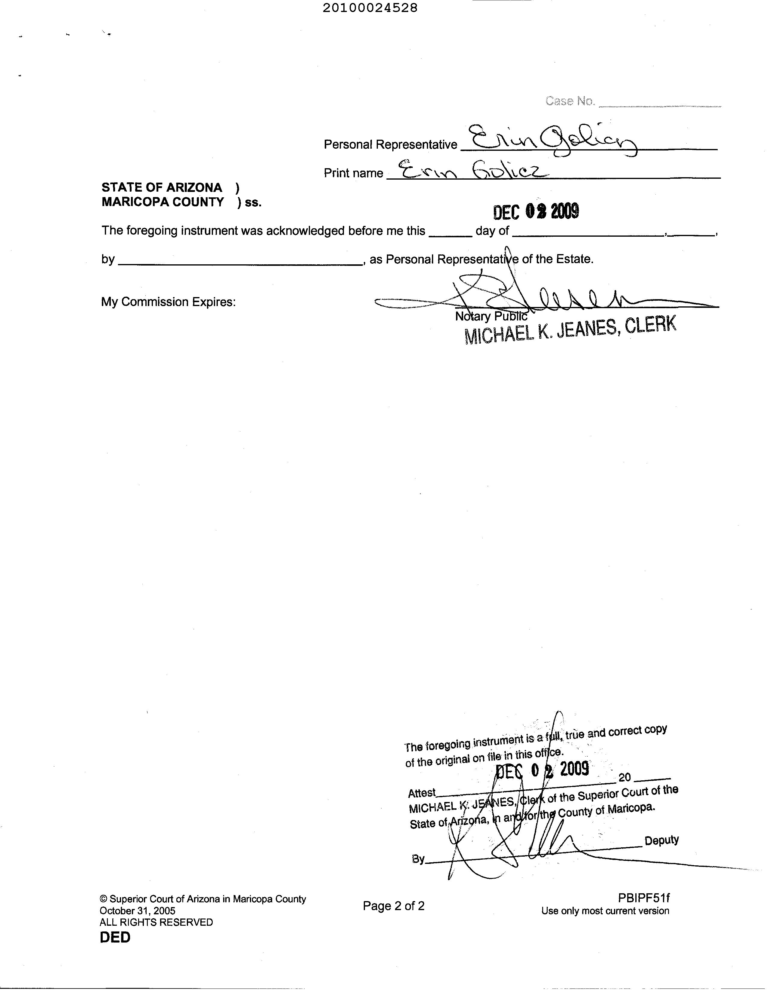 MARICOPA, AZ Document:DED PRO 2010.24528 Page:5 of 5 Printed on:6/11/2024 10:04 AM Branch :FC0 User :JSTI