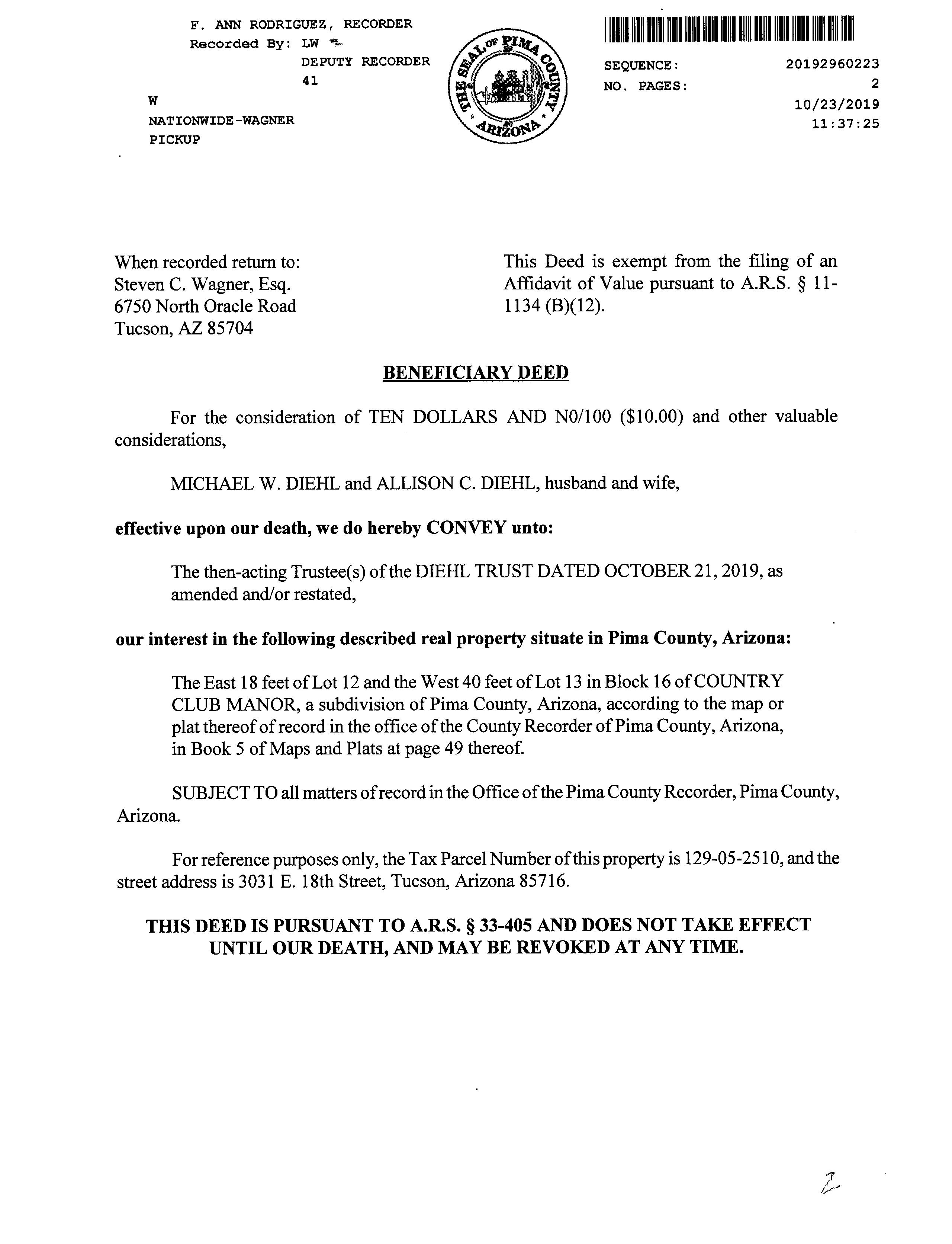 Owner Name: Diehl Michael W /Diehl Allison C