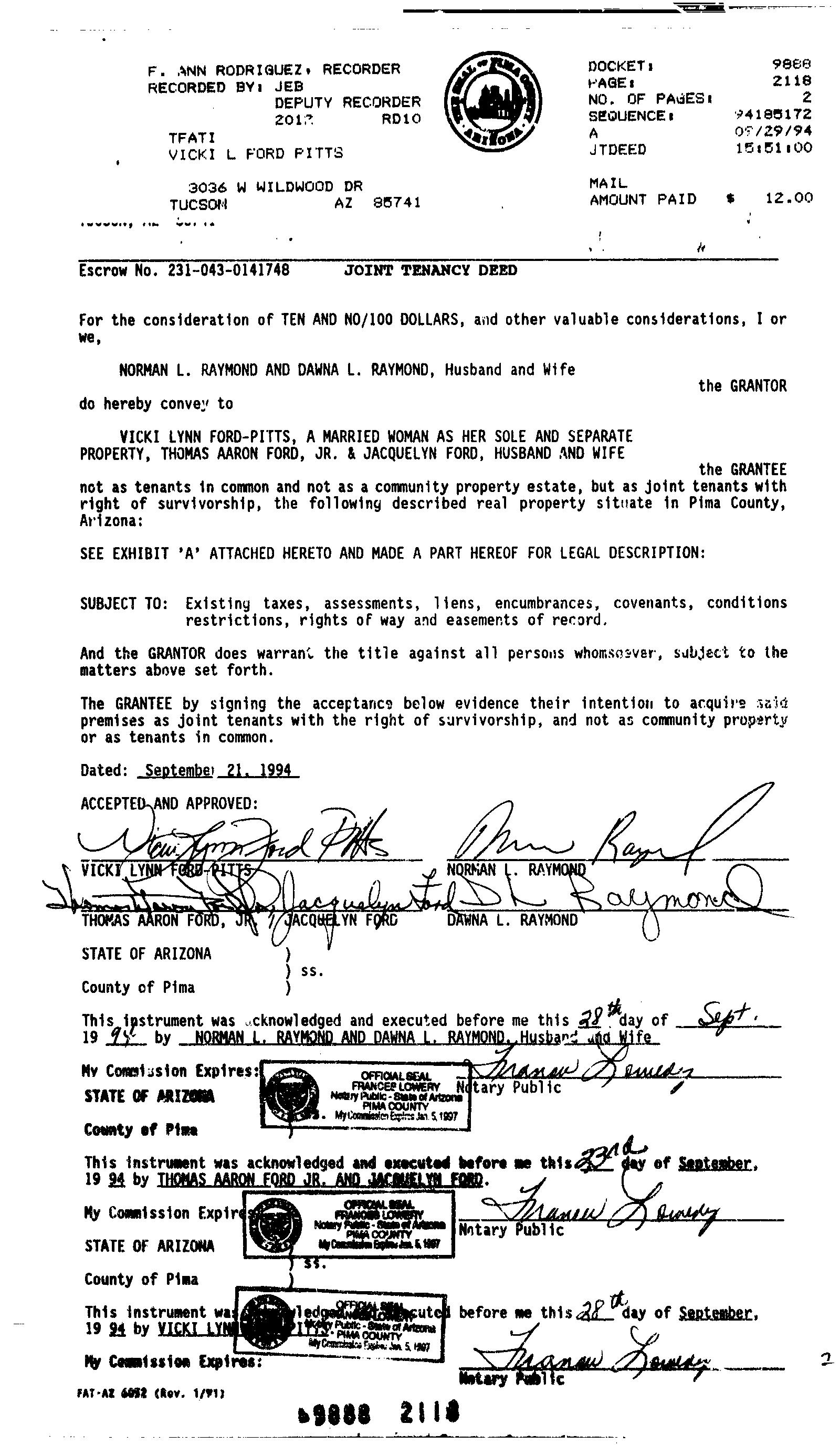 Recording/Sale Date : 09/29/1994 / 09/00/1994
