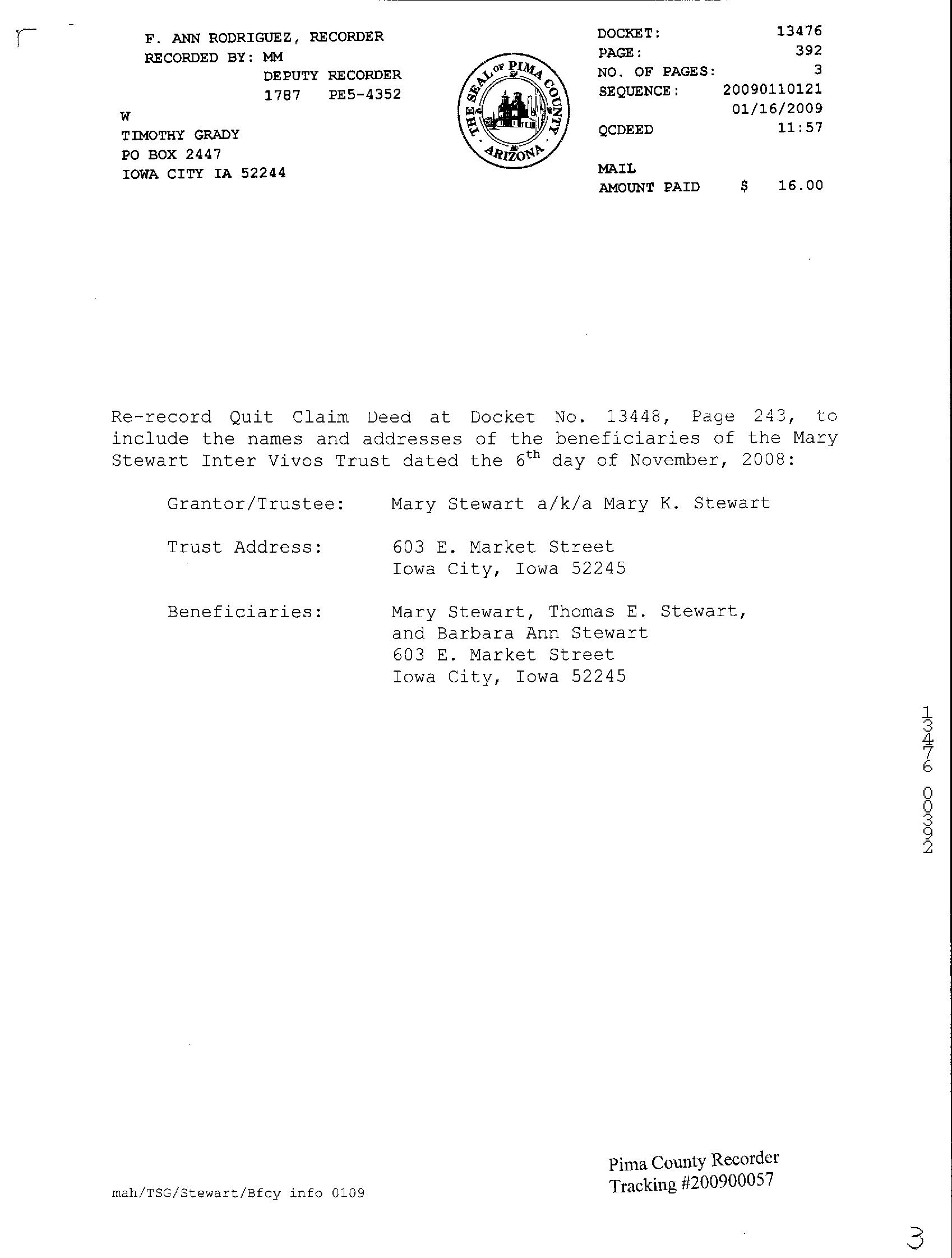 OWNER: EDENS LANA 2/8 & STEWART MARY INTER VIVIOS TR 6481 577 03/06/1981 MAIL: GRIFHORST LINDA 1/8 & GROEN JUDY 1/8 &