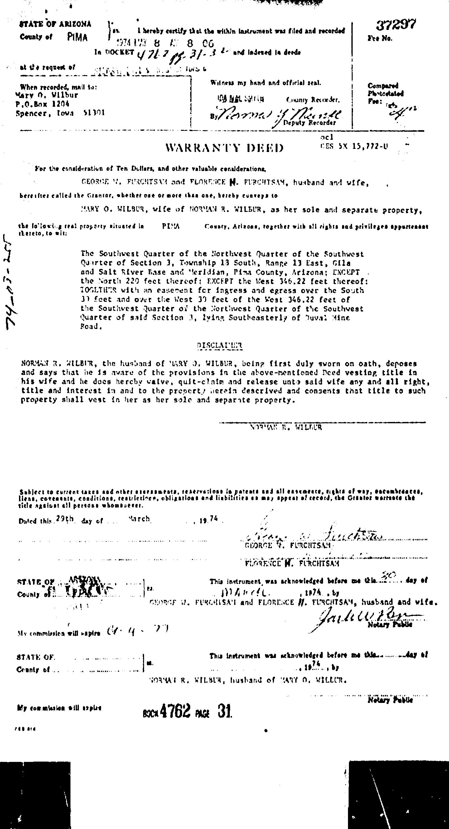Mailing Address : 8956 S Eisenhower Rd, Tucson AZ 85756-9519 R076