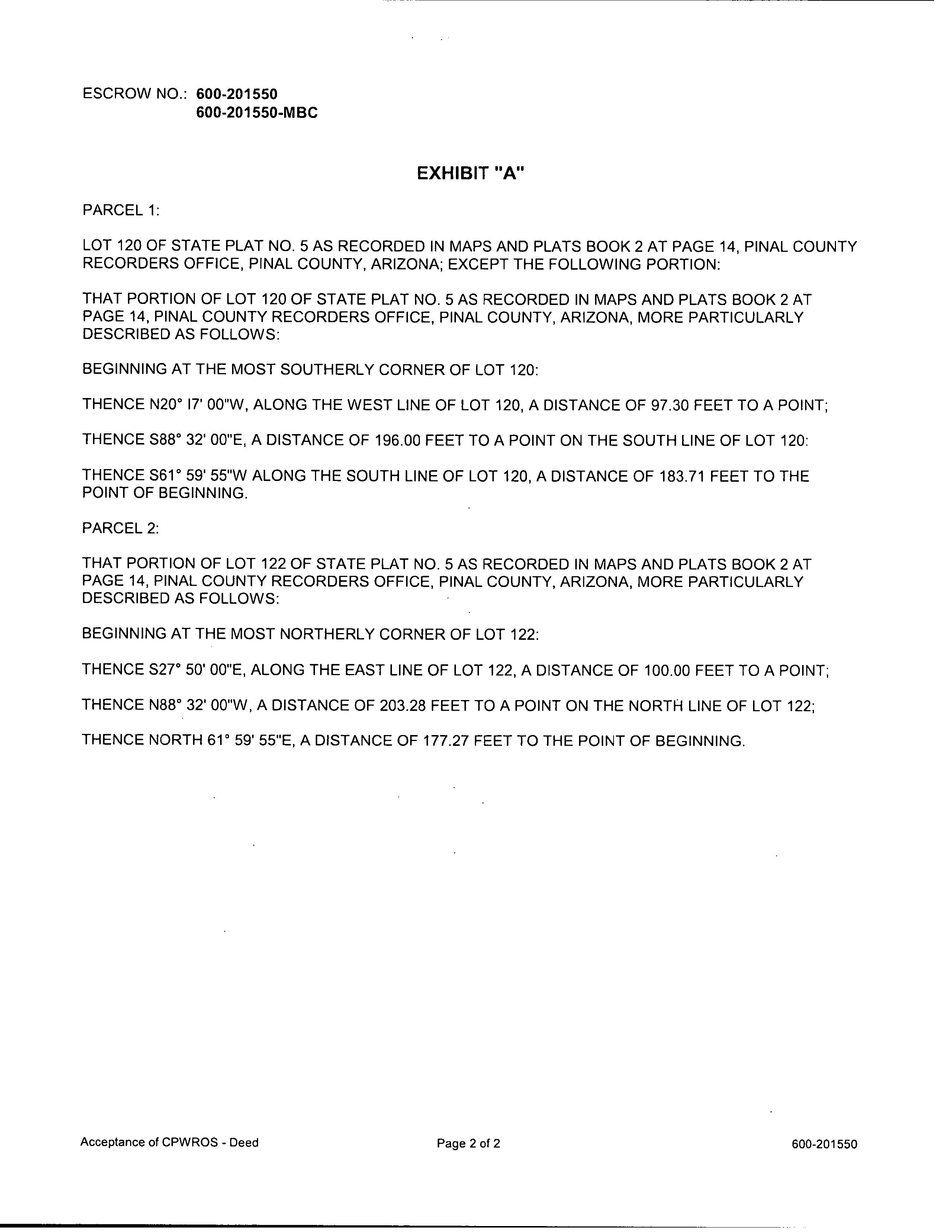 LEGAL: ORACLE STATE TRACTS: LT 120; & THAT POR OF LT 122 BEG AT THE MOSTNLY COR OF LT 122; TH S-27 DEG E100' TH N-88 DEG W-203.28' TH N -61 DEG E-177.27' EXC TRI IN SLY COR OF LT 120 SEC 36-9S-15E 1.30AC