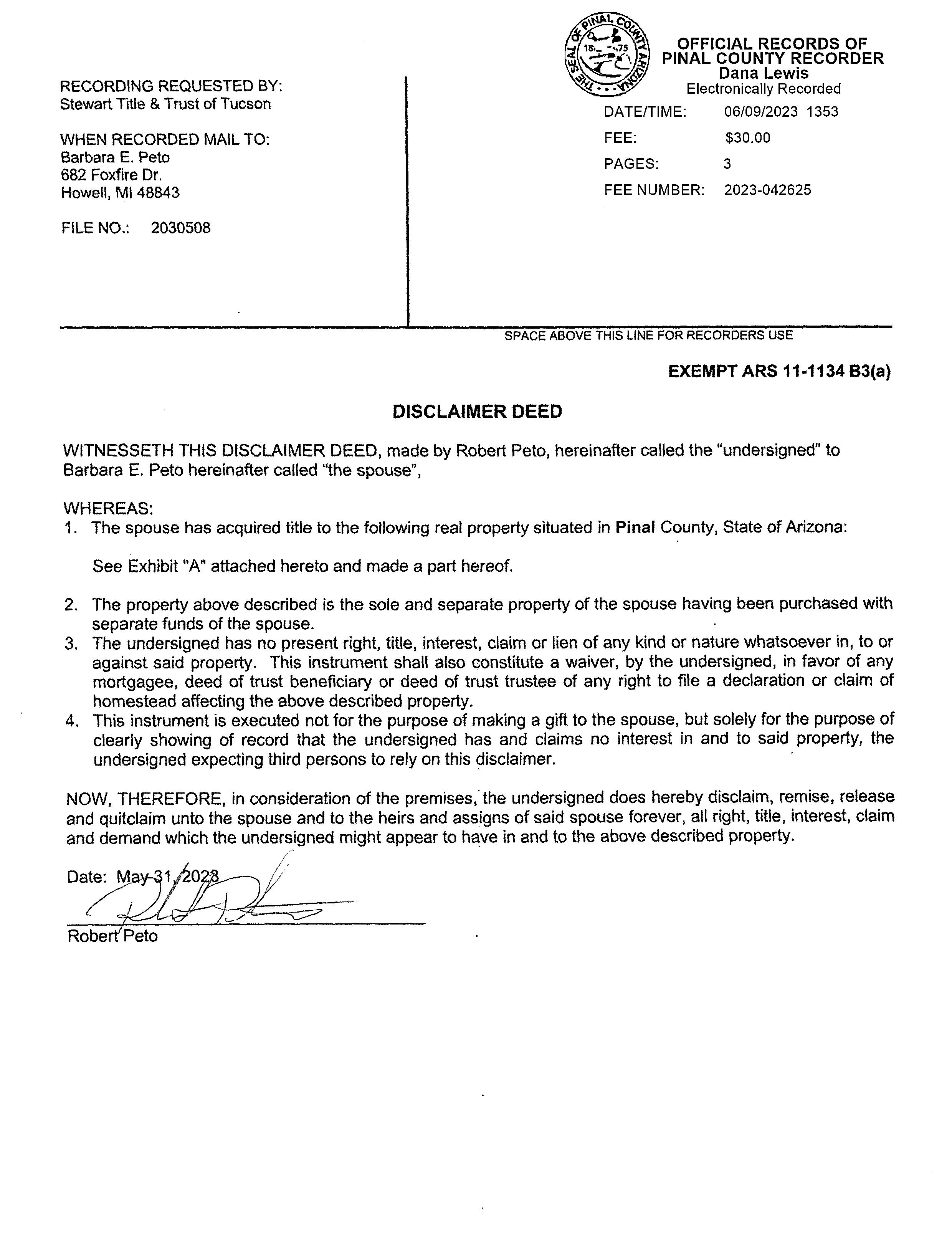 Deed Type : Disclaimer Deed