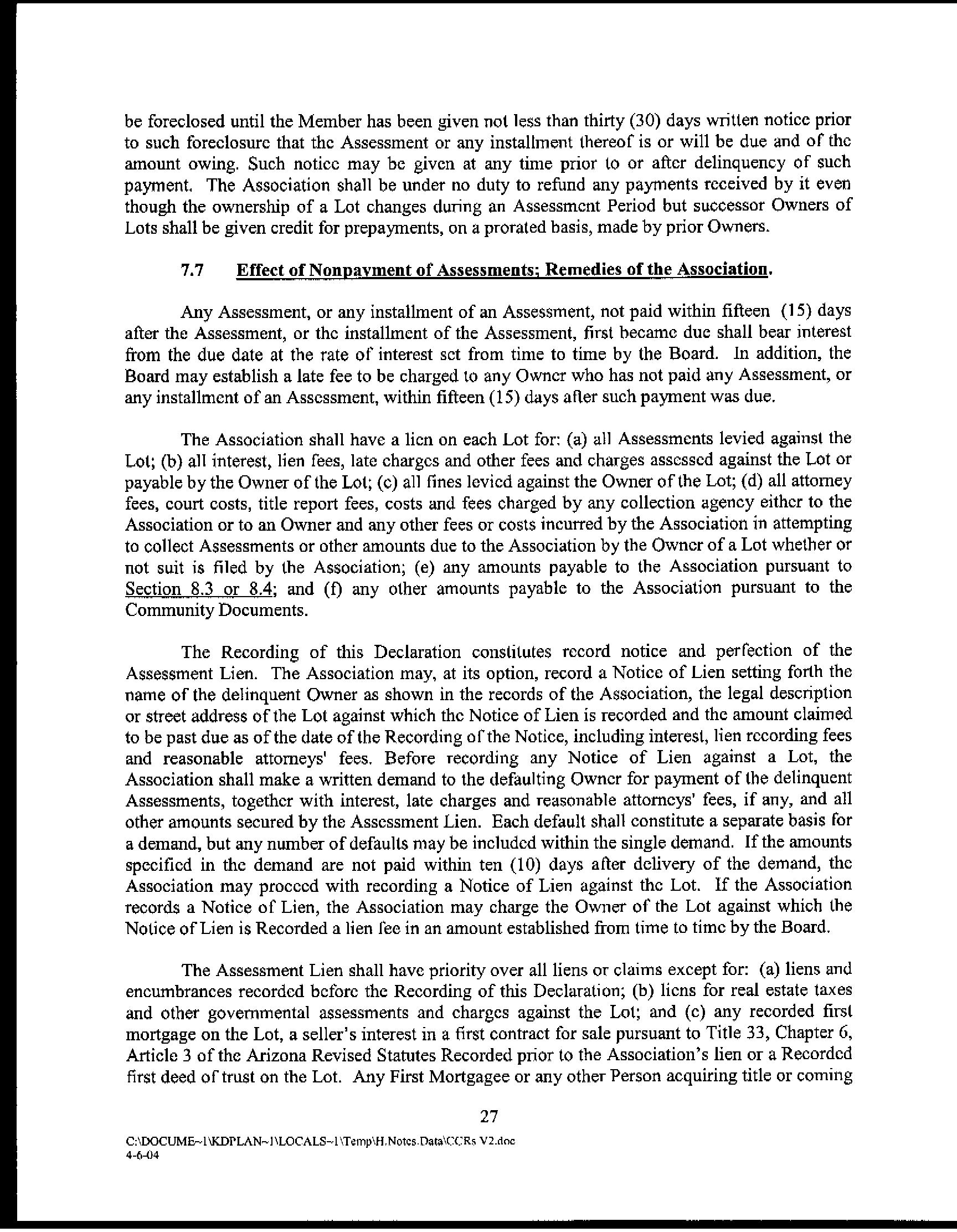 11 Unrecorded lien by a homeowners association
