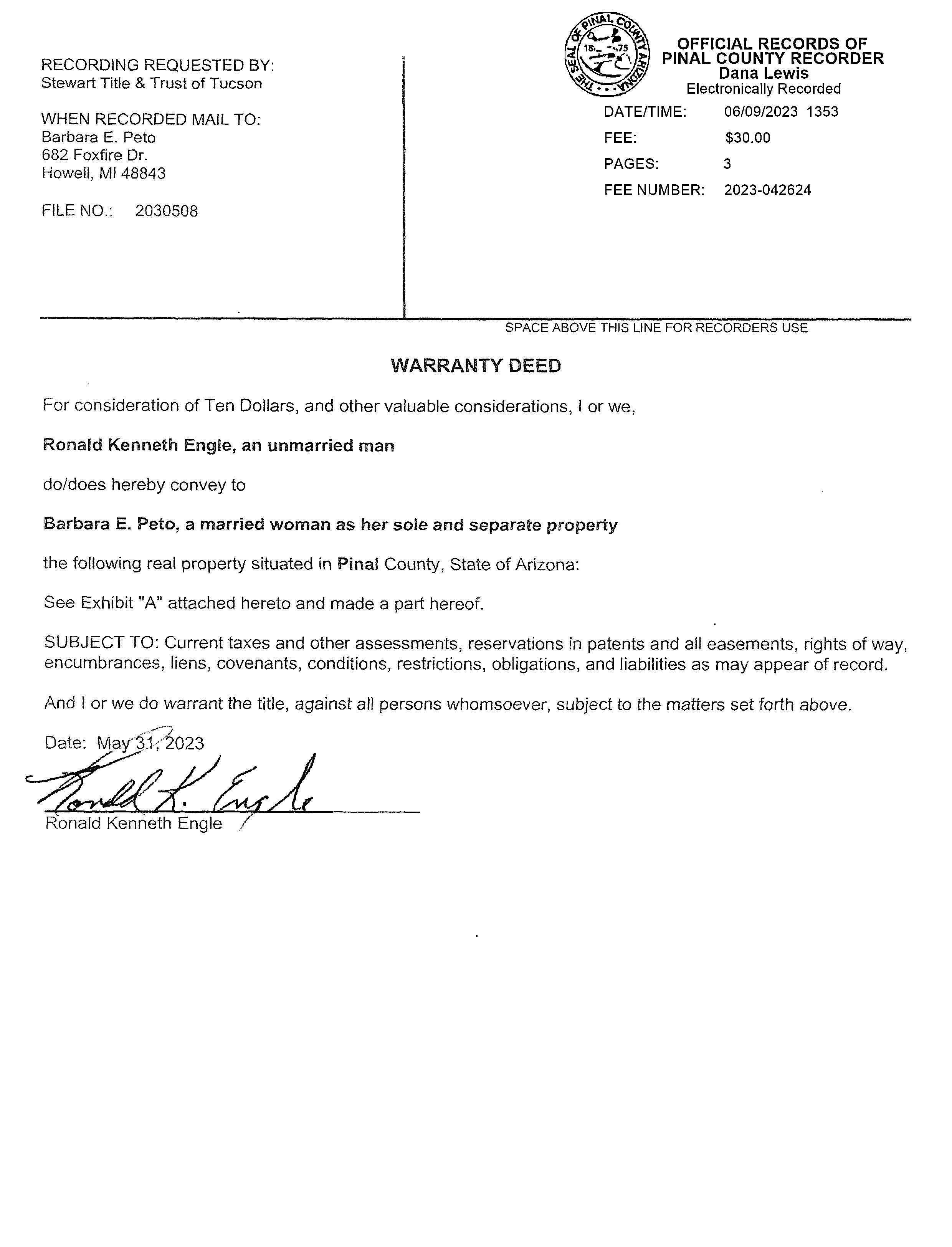 APN / Alternate APN: 509-33-107A / Deed Type: Warranty Deed