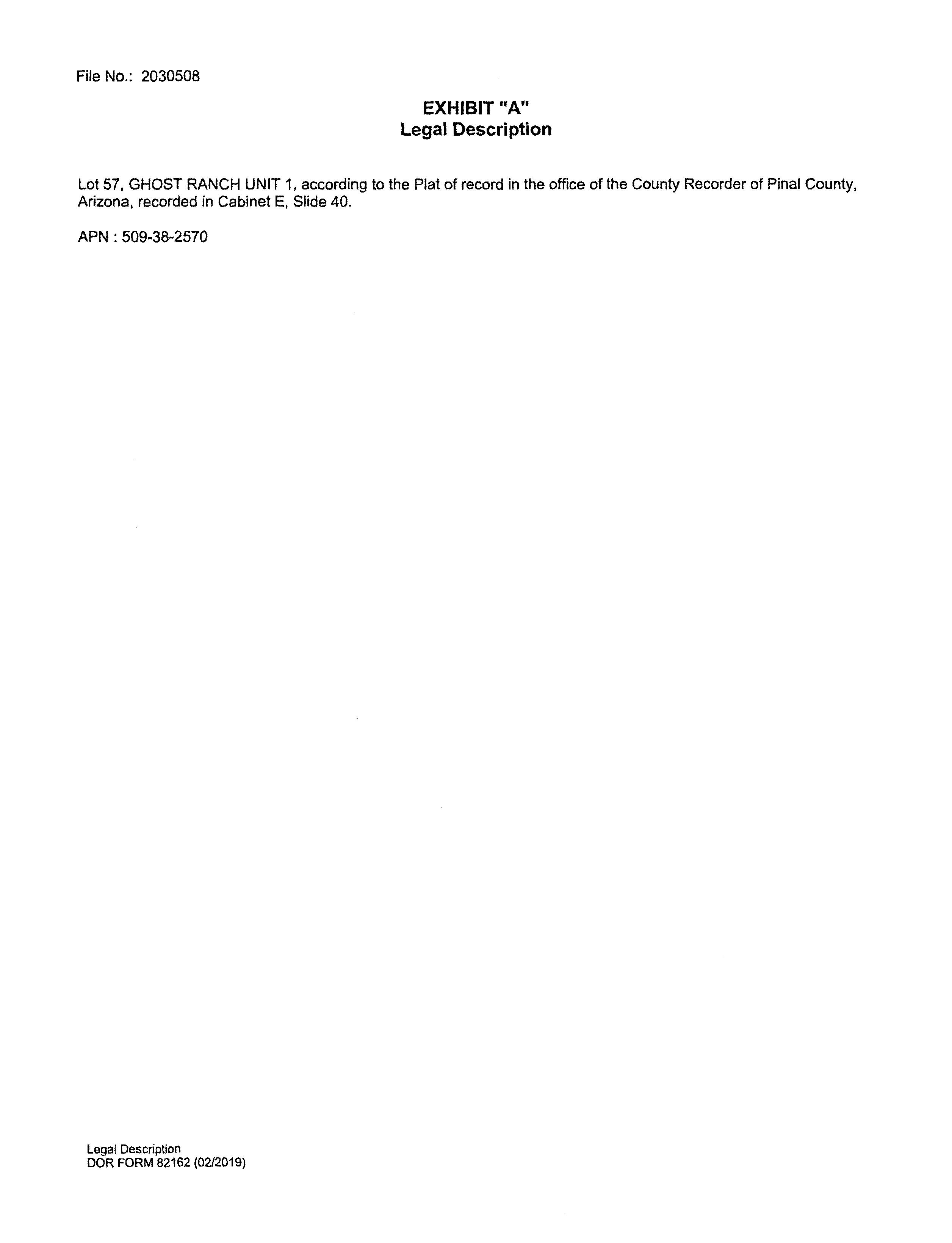 Legal Description : Ghost Ranch Unit 1 Lot 57 Sec 21-5s-6e 9387 Sq Ft 0.22 Ac