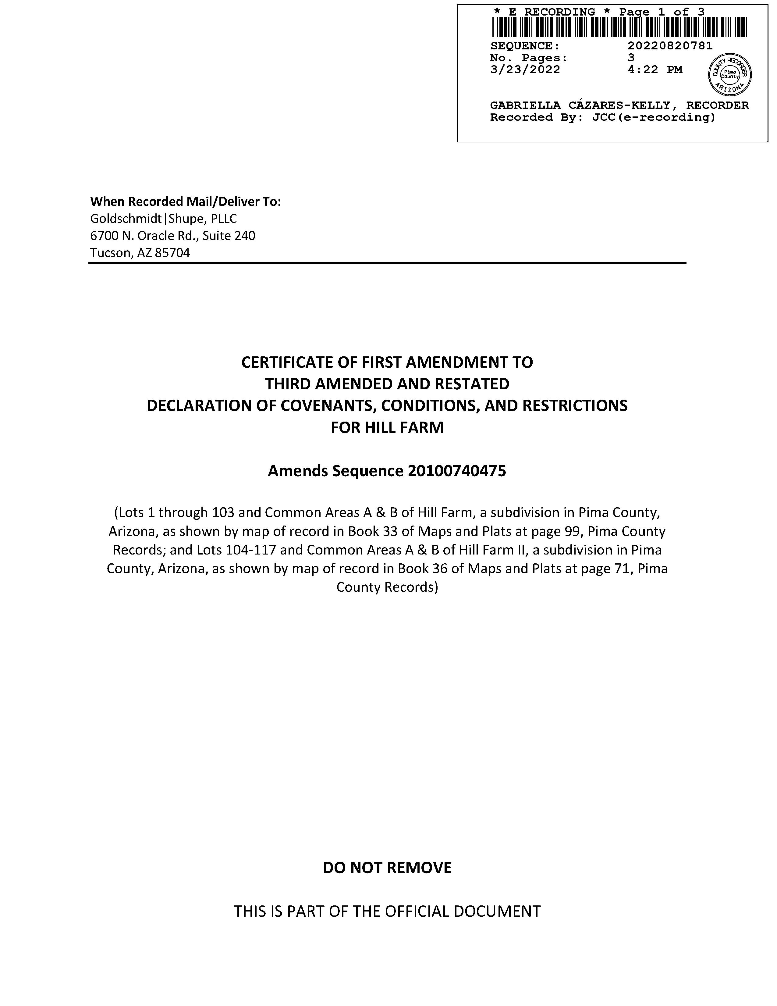 Mailing Address : 3112 N Hill Farm Dr, Tucson AZ 85712-1341 C009