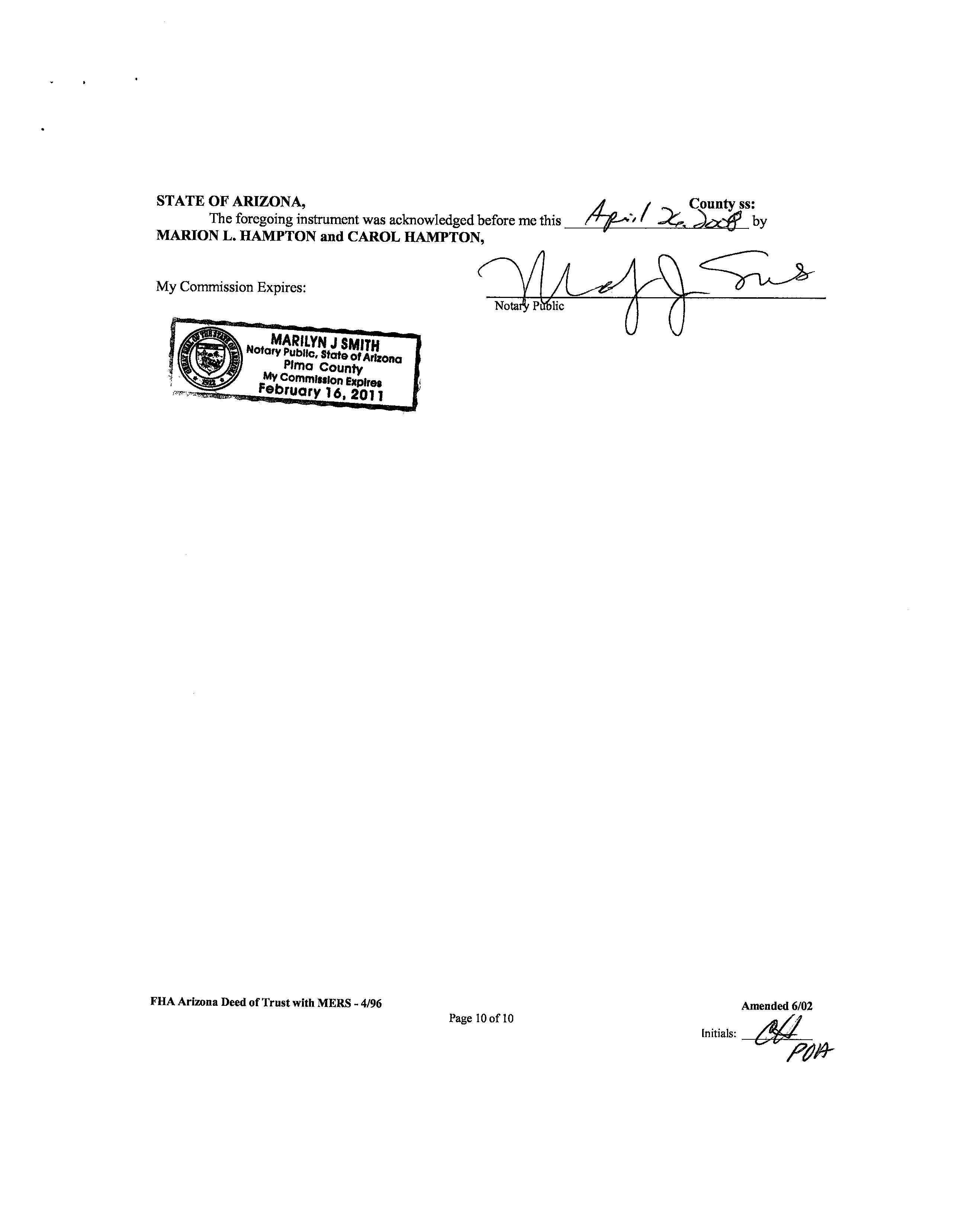 Owner Name : Hampton Marion L Jr Mailing Address : Po Box 786, Oracle AZ 85623-0786 B009