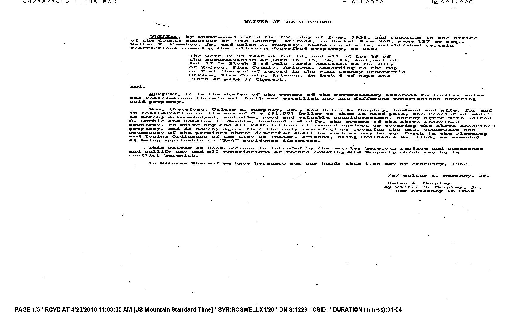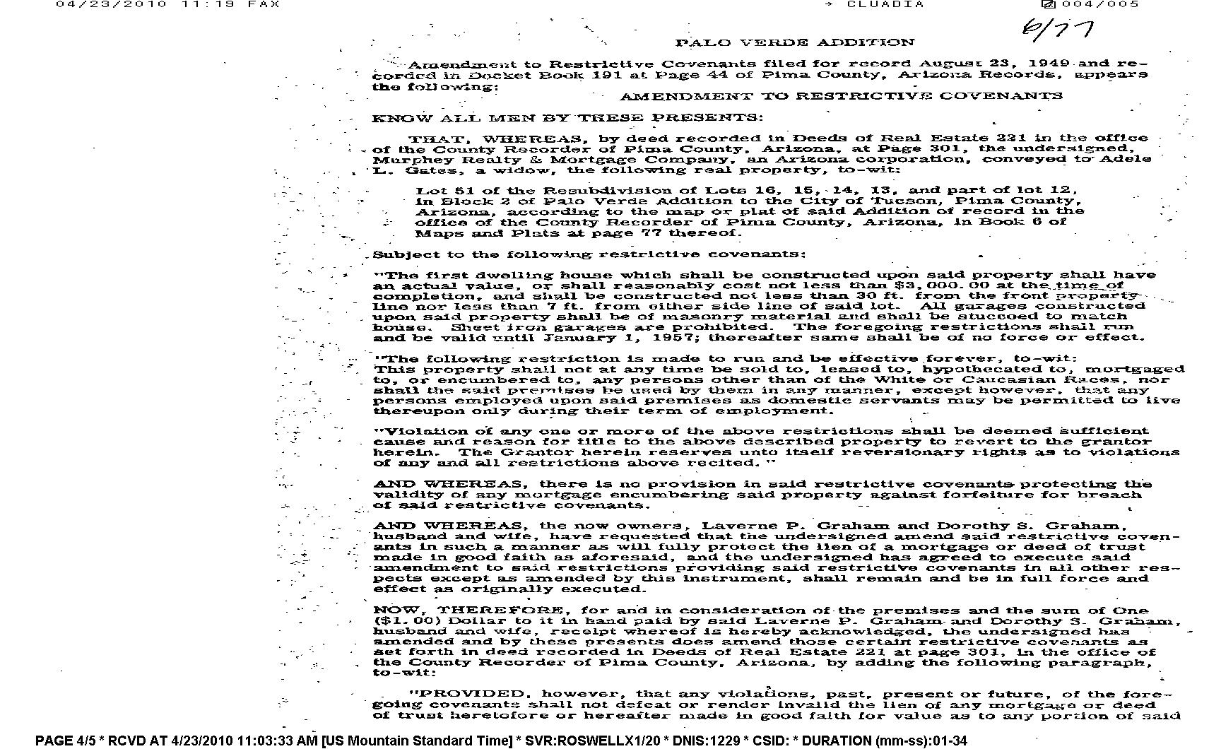 Legal Description : Palo Verde Resub Of Lots 13 14 15 16 & Pt Of 12 Blk 2 Amended Lot 35 (11623/4550)