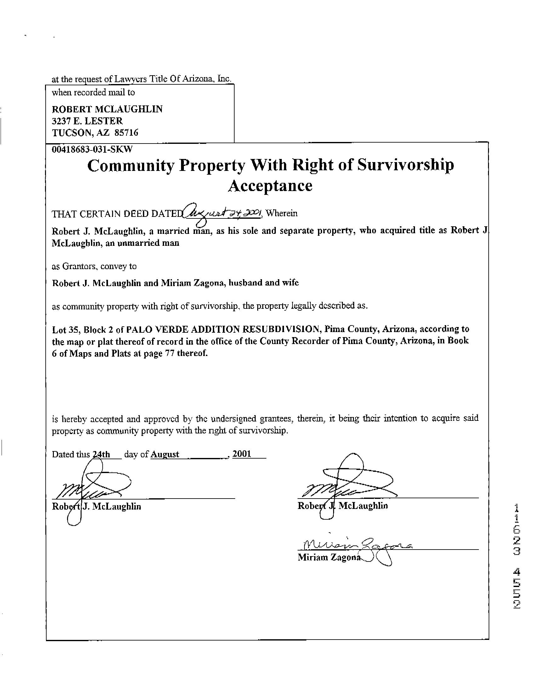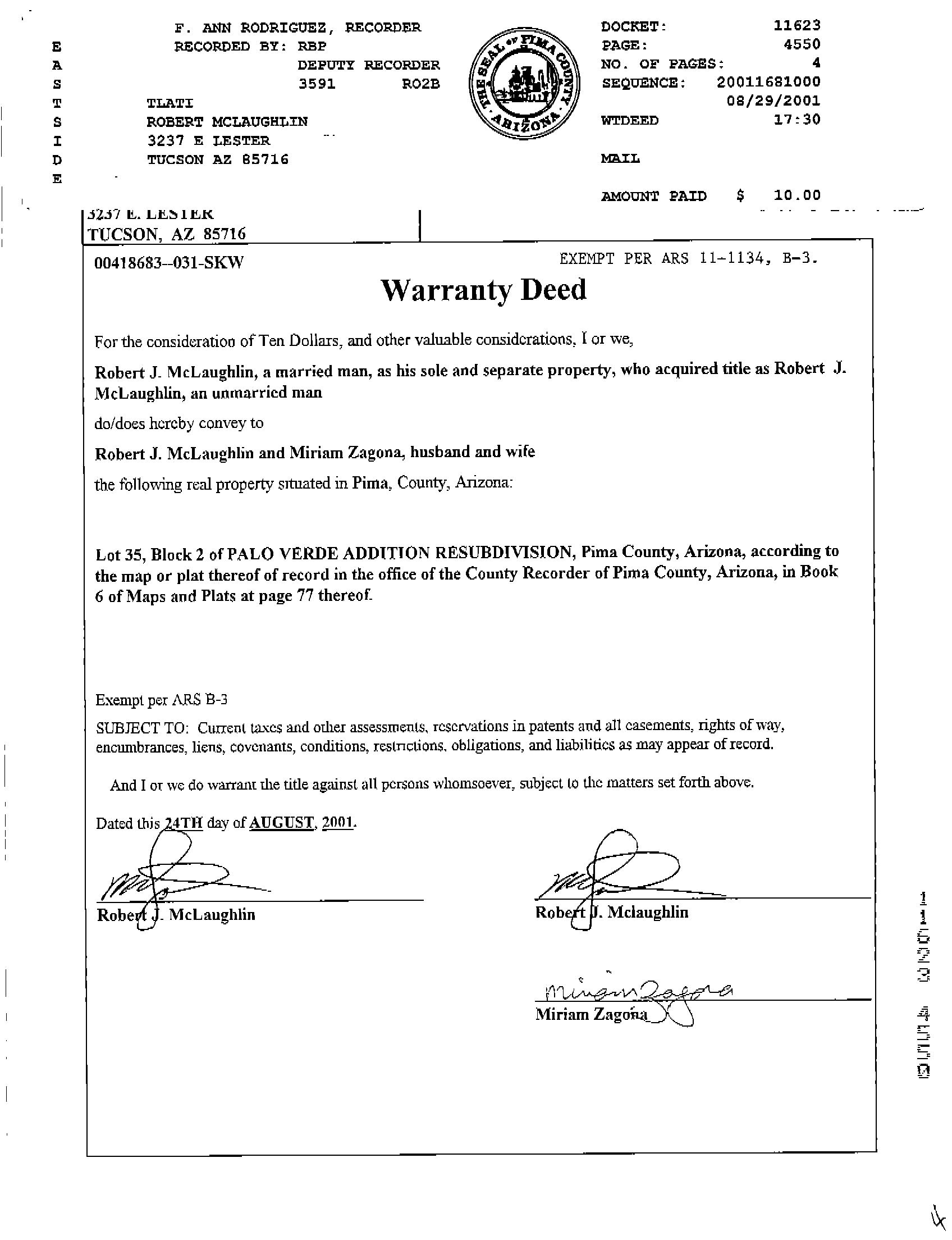 Owner Name : Mc Laughlin Robert J / Zagona Miriam