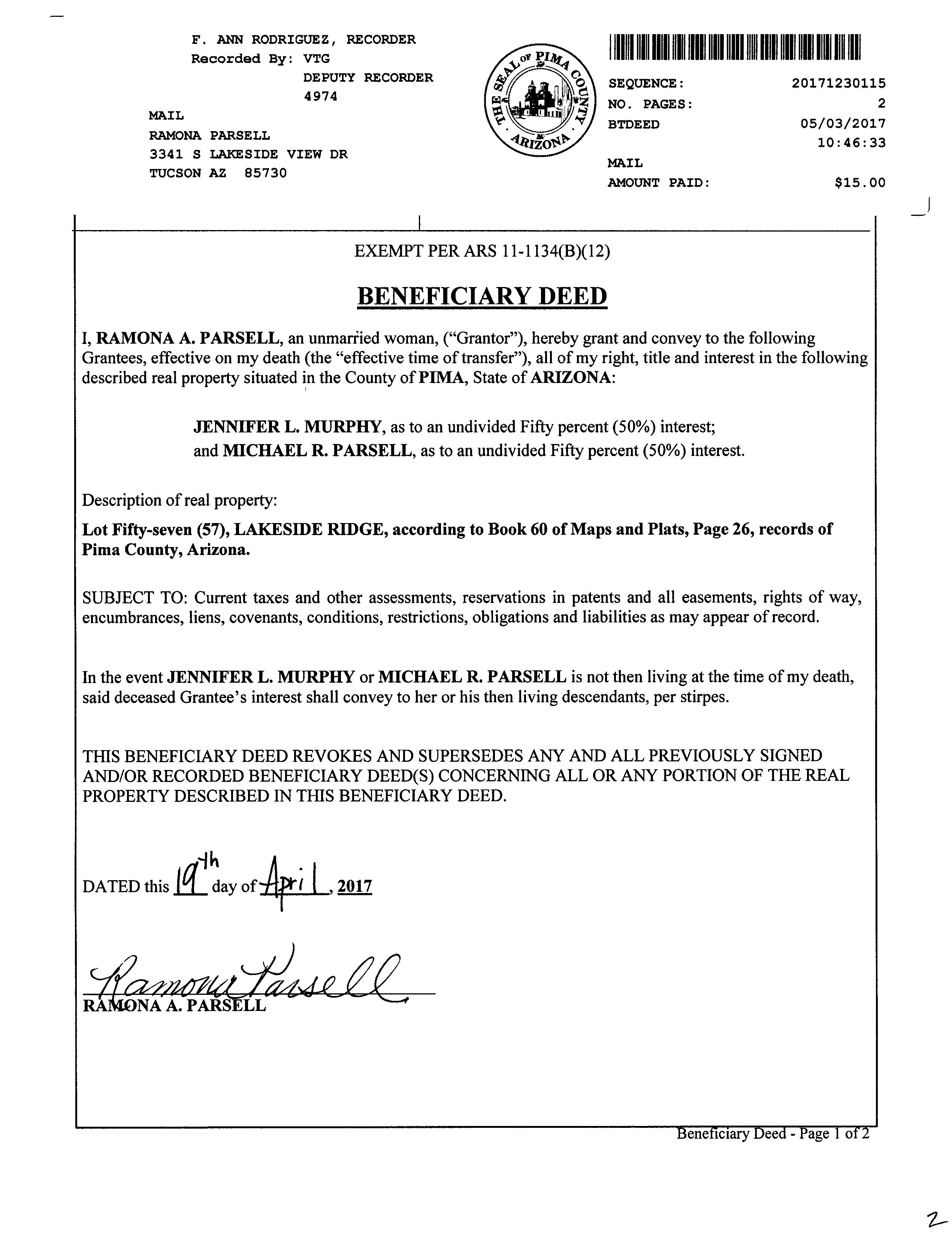 Owner Name: Benge Rachael M Trust /Benge-adamson Veronica