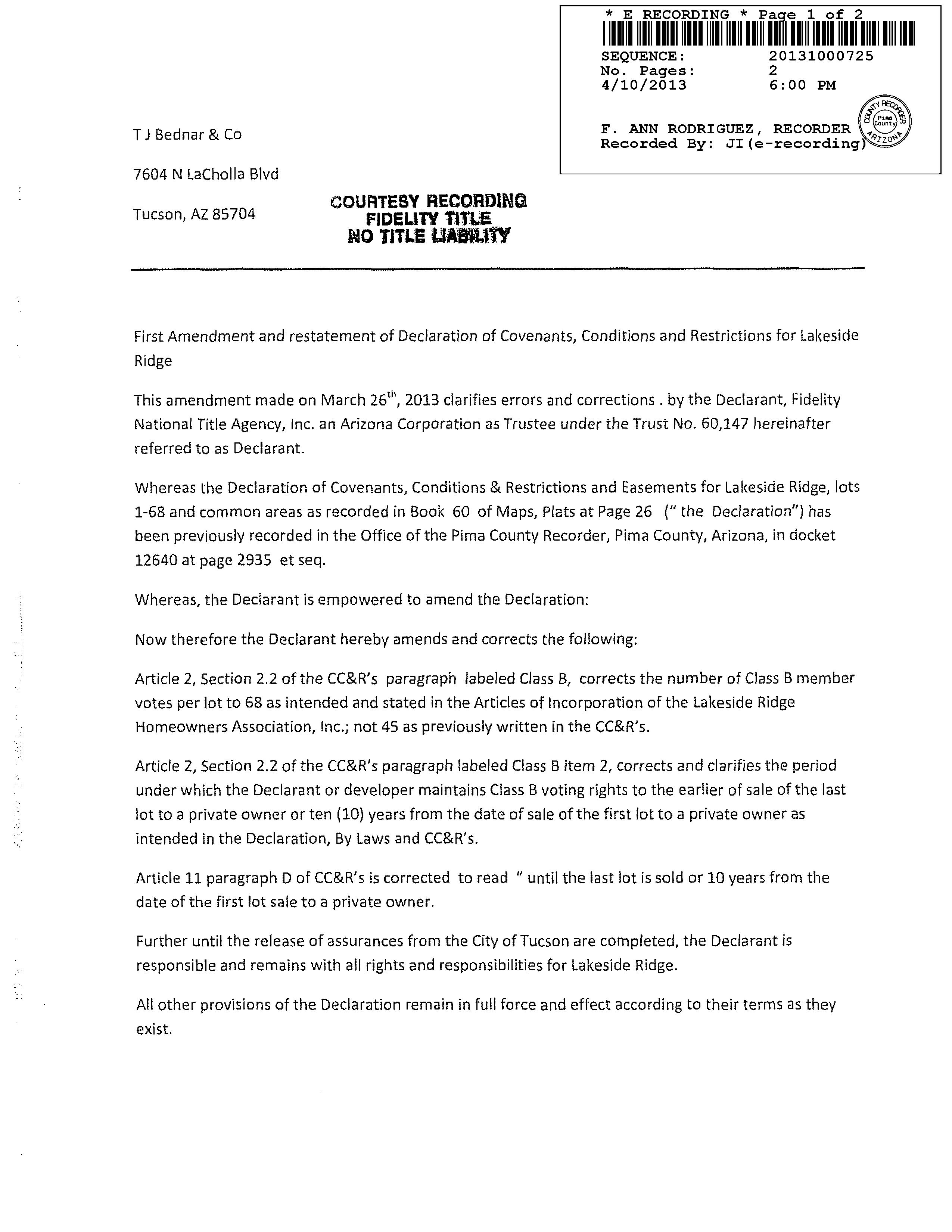 Mailing Address : 3341 S Lakeside View Dr, Tucson AZ 85730-2737 C061