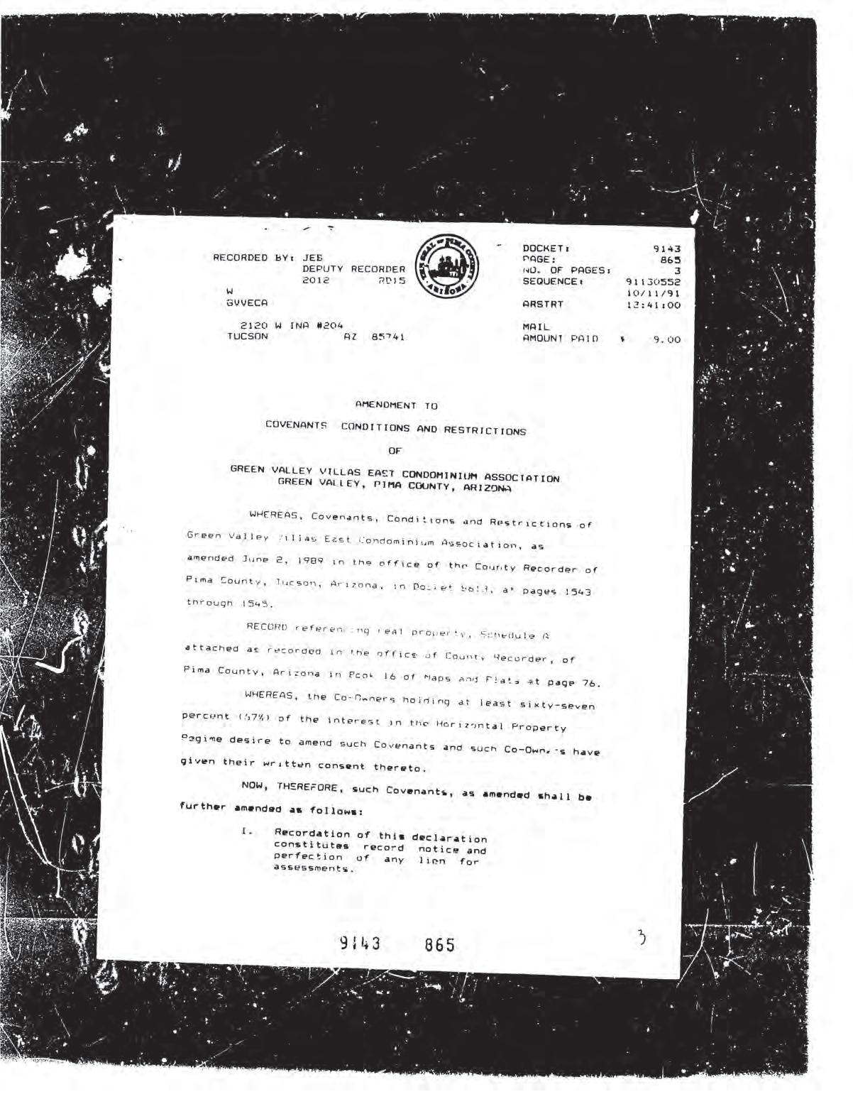 Mailing Address : 337 S Paseo Madera #d, Green Valley AZ 85614-0710 C085
