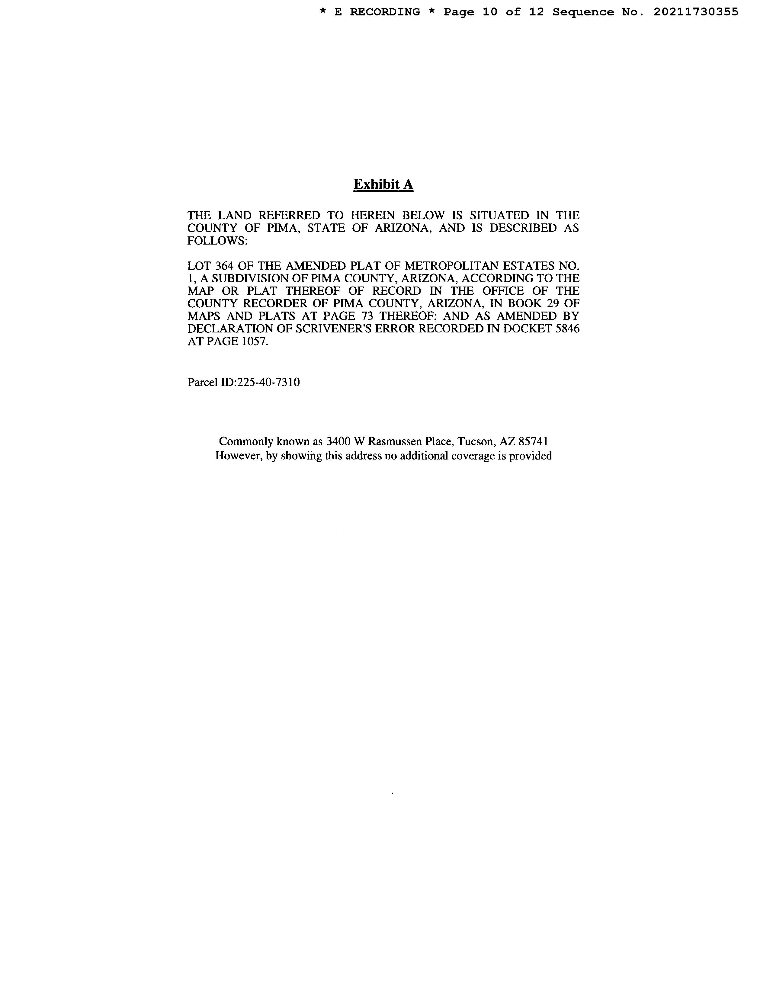 Subject Property : 3400 W Rasmussen Pl Tucson AZ 85741