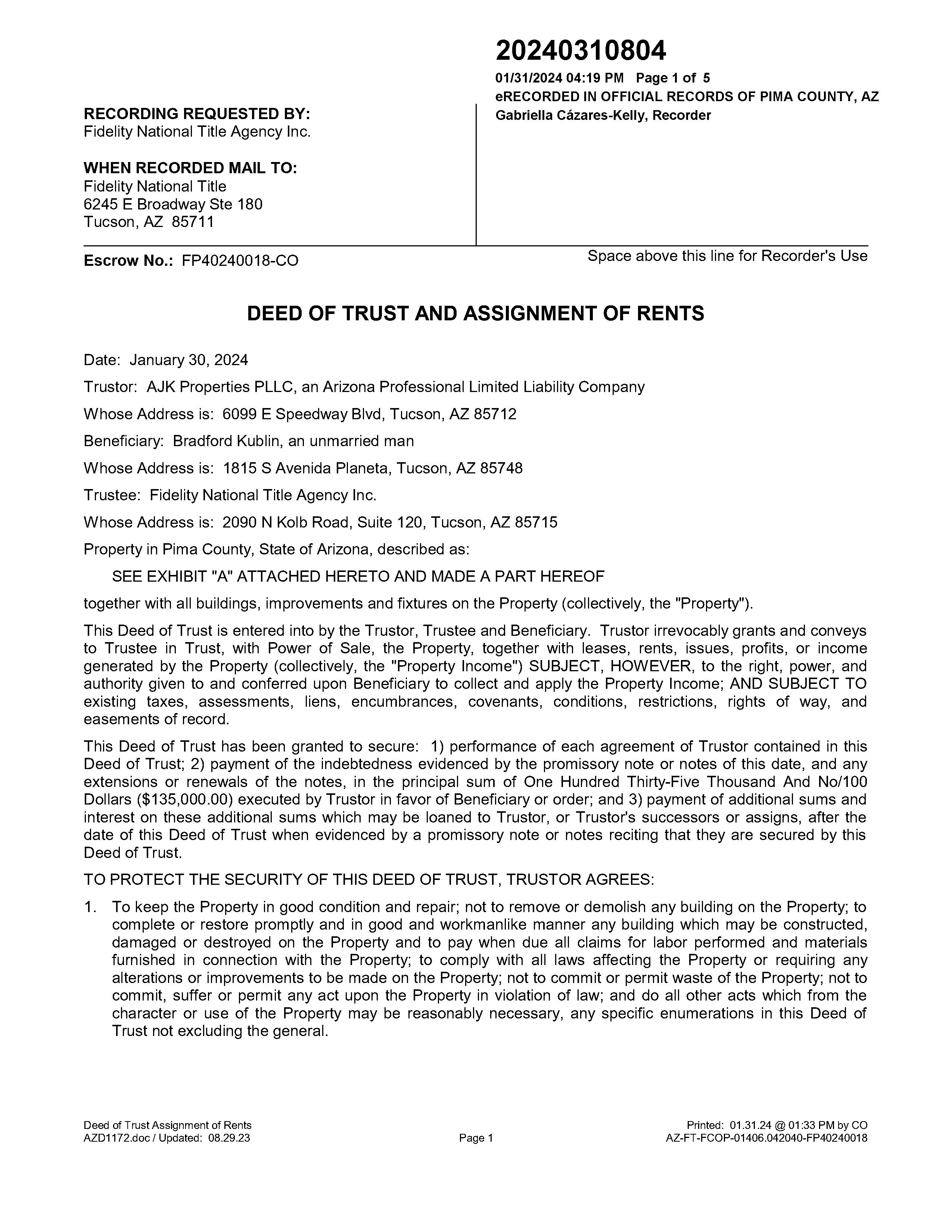 FIRST AMERICAN - SOUTHERN ARIZONA ADMIN OFFICE 520.885.1600 tsa-administration@firstam.com First American Title Insurance Company, and the operating divisions thereof, make no express or implied warranty respecting the information presented and assume no responsibility for errors or omissions. First American, the eagle logo, First American Title, and firstam.com are registered trademarks or trademarks of First American Financial Corporation and/or its affiliates. ©2024 First American Financial Corporation and/or its affiliates. All rights reserved. NYSE: FAF