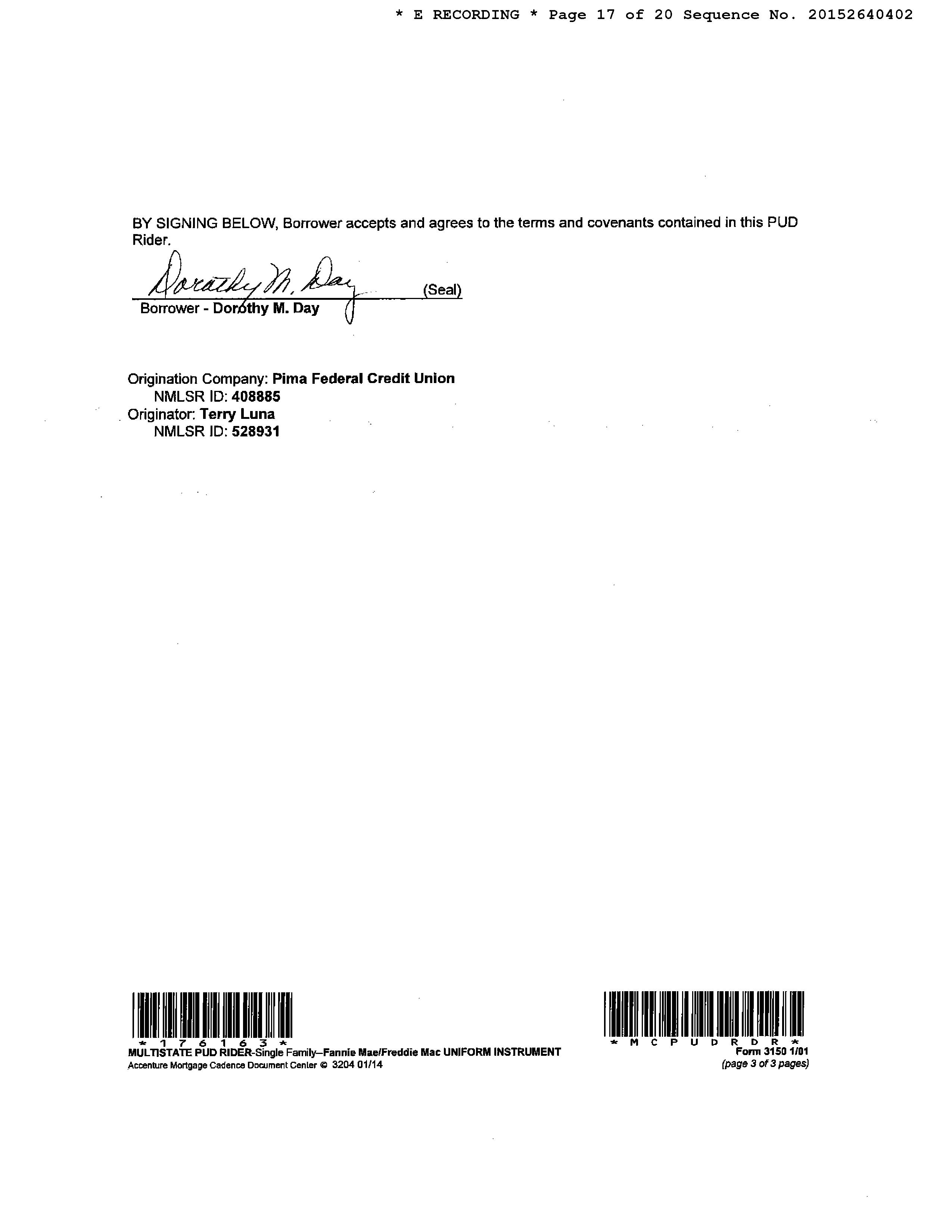 Owner Name : Day Dorothy Mailing Address : 3429 S Goldleaf Loop, Tucson AZ 85735-9009 R161