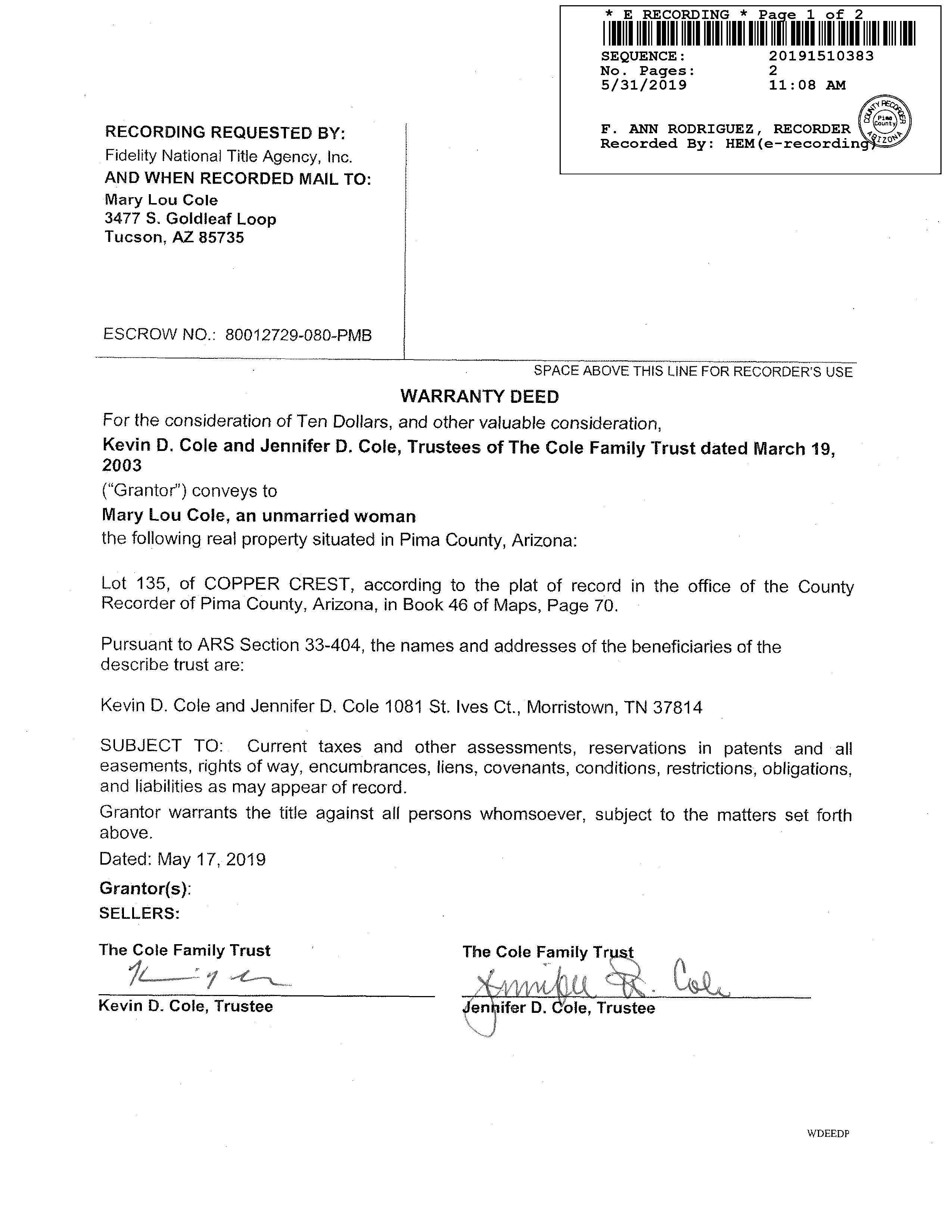 Owner Name : Cole Mary Lou