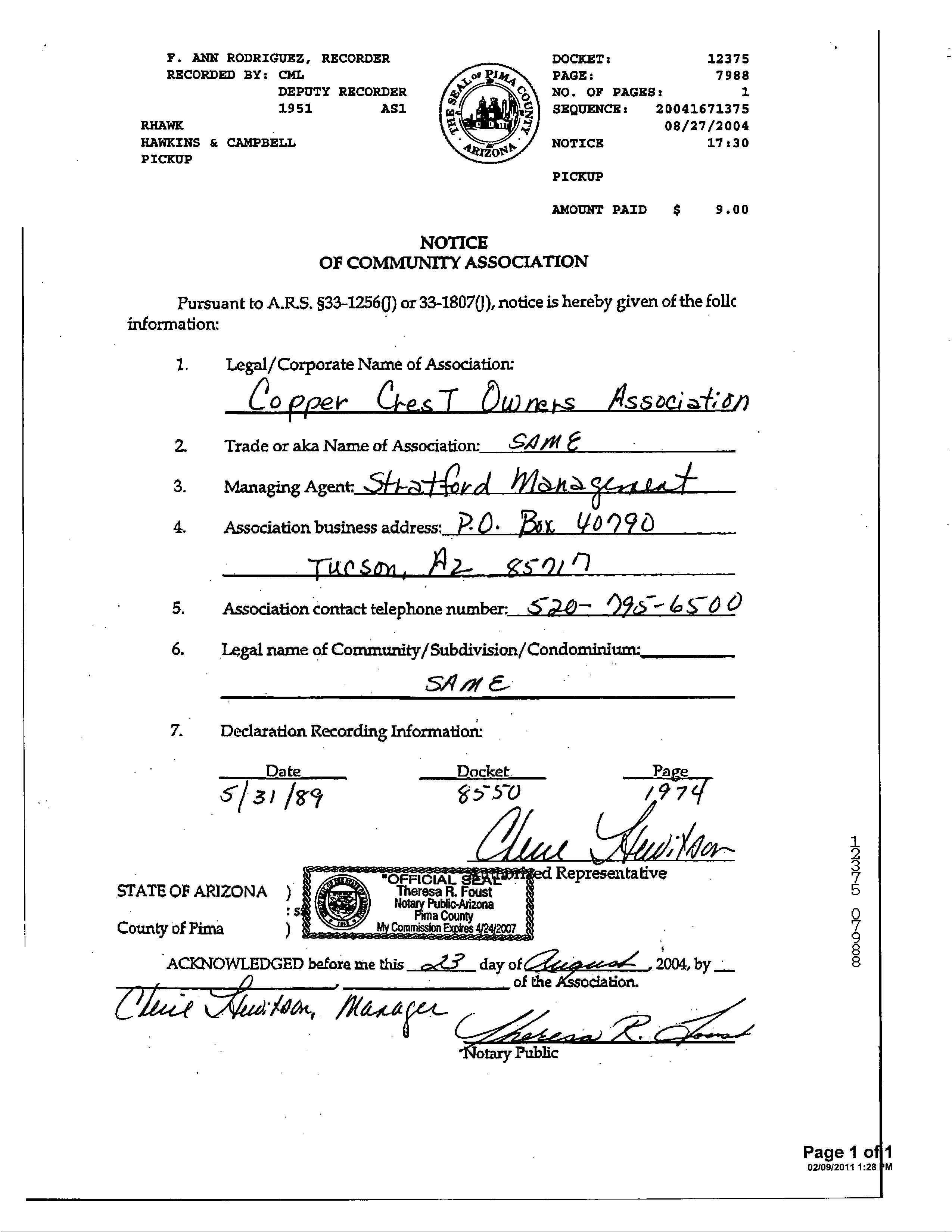 Owner Name : Stevenson Sharilyn Subdivision : Copper Crest