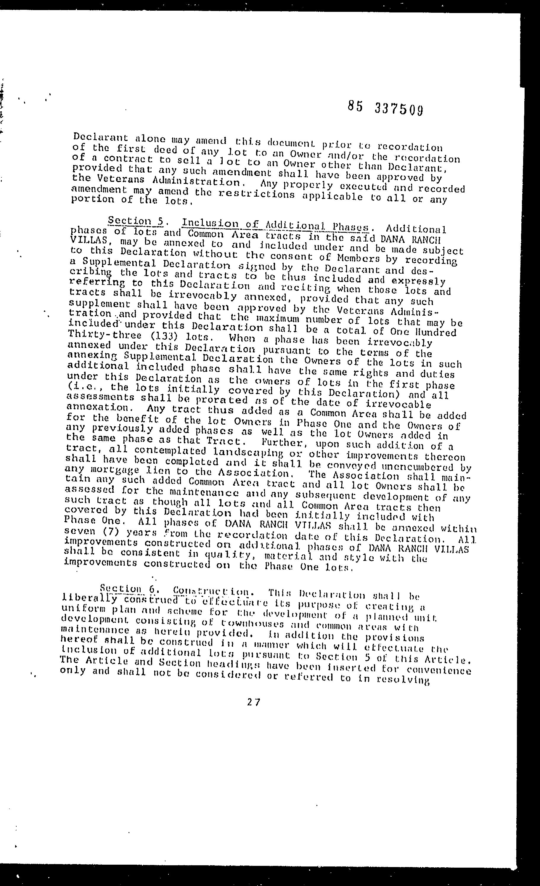 MARICOPA, AZ Document:RES 1985.337509 Page:5 of 35 Printed on:8/25/2023 9:21 AM Branch :FC0 User :JSTI