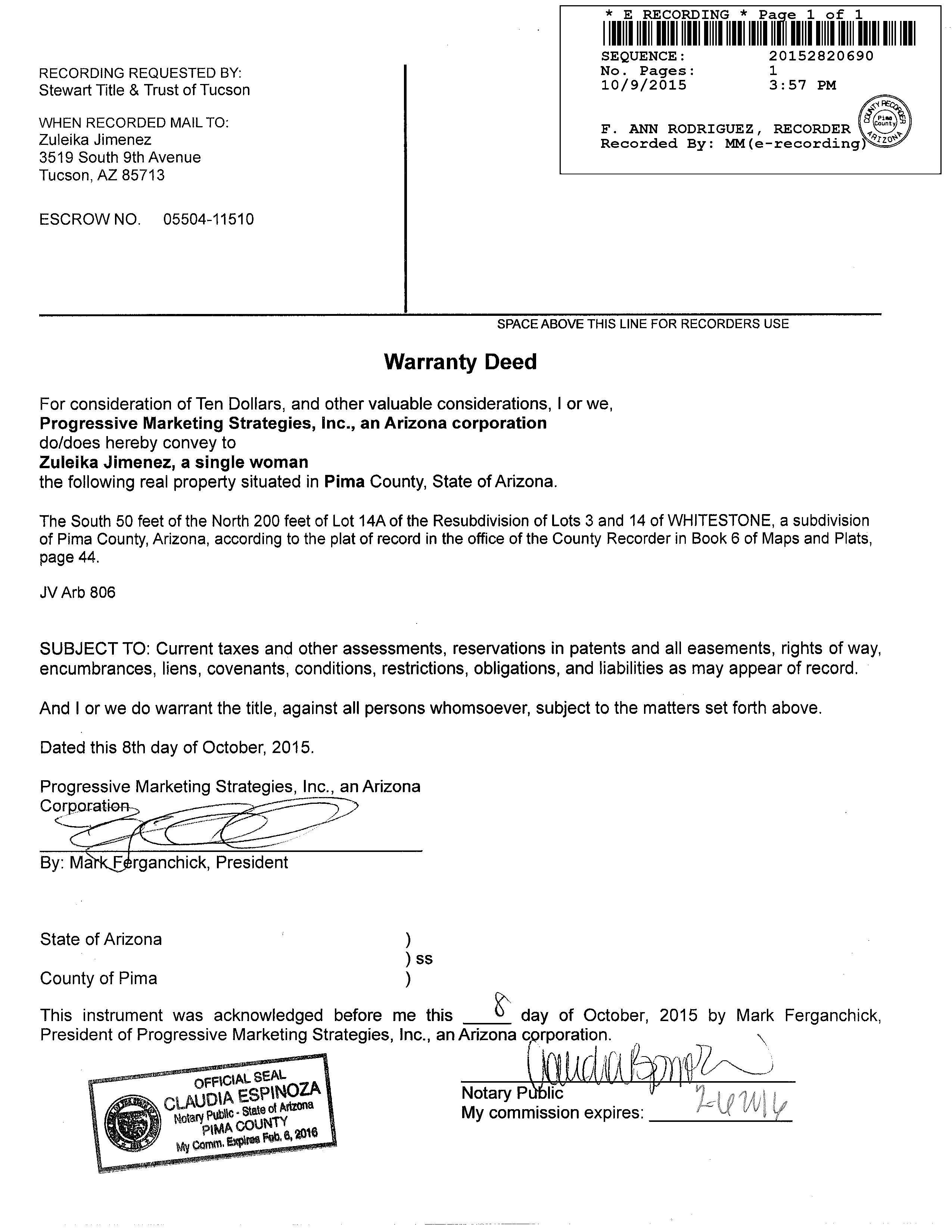 Mailing Address : 3519 S 9th Ave, Tucson AZ 85713-5909 C002