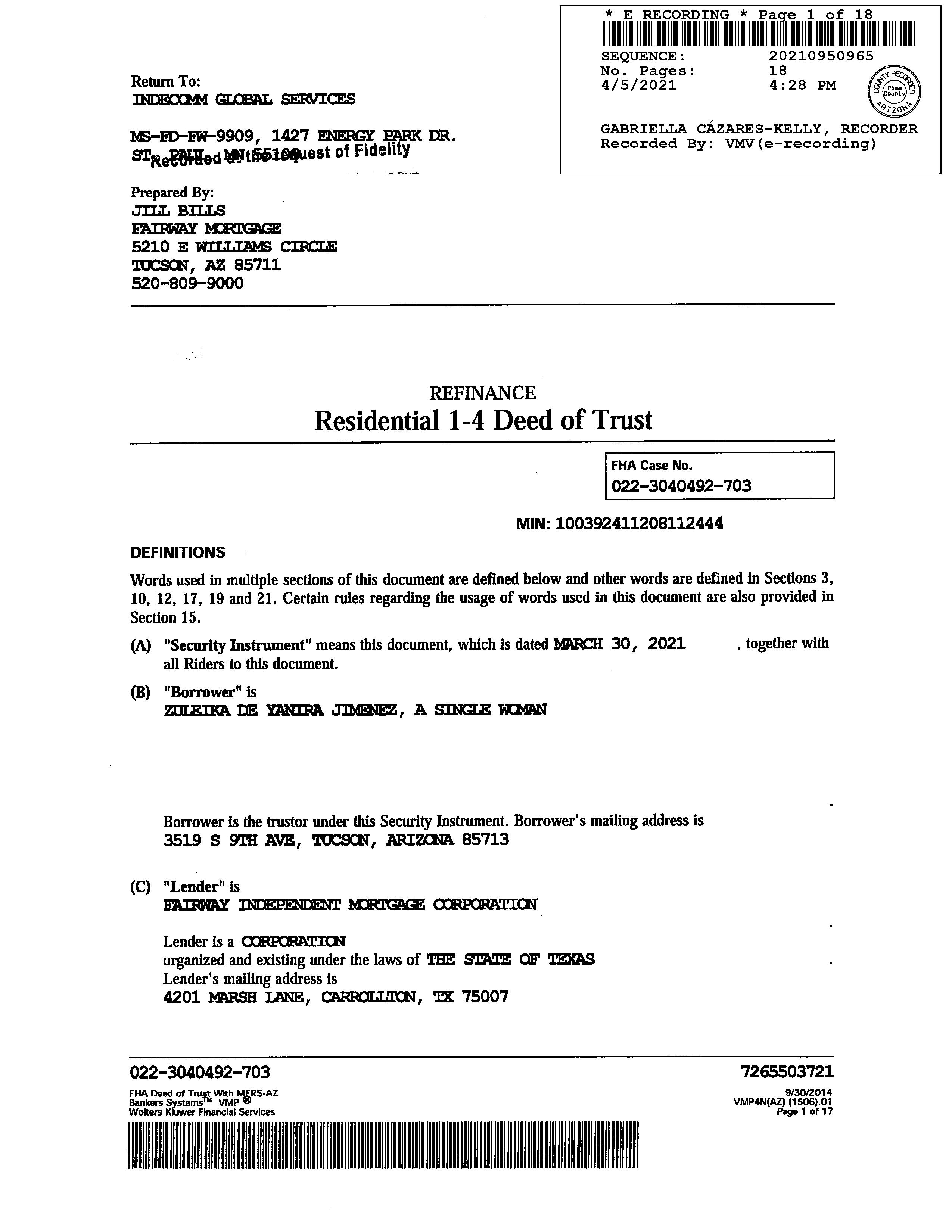 Recording/Sale Date : 10/09/2015 / 10/08/2015 1st Mtg Amount/Type : $93,180 / Fha
