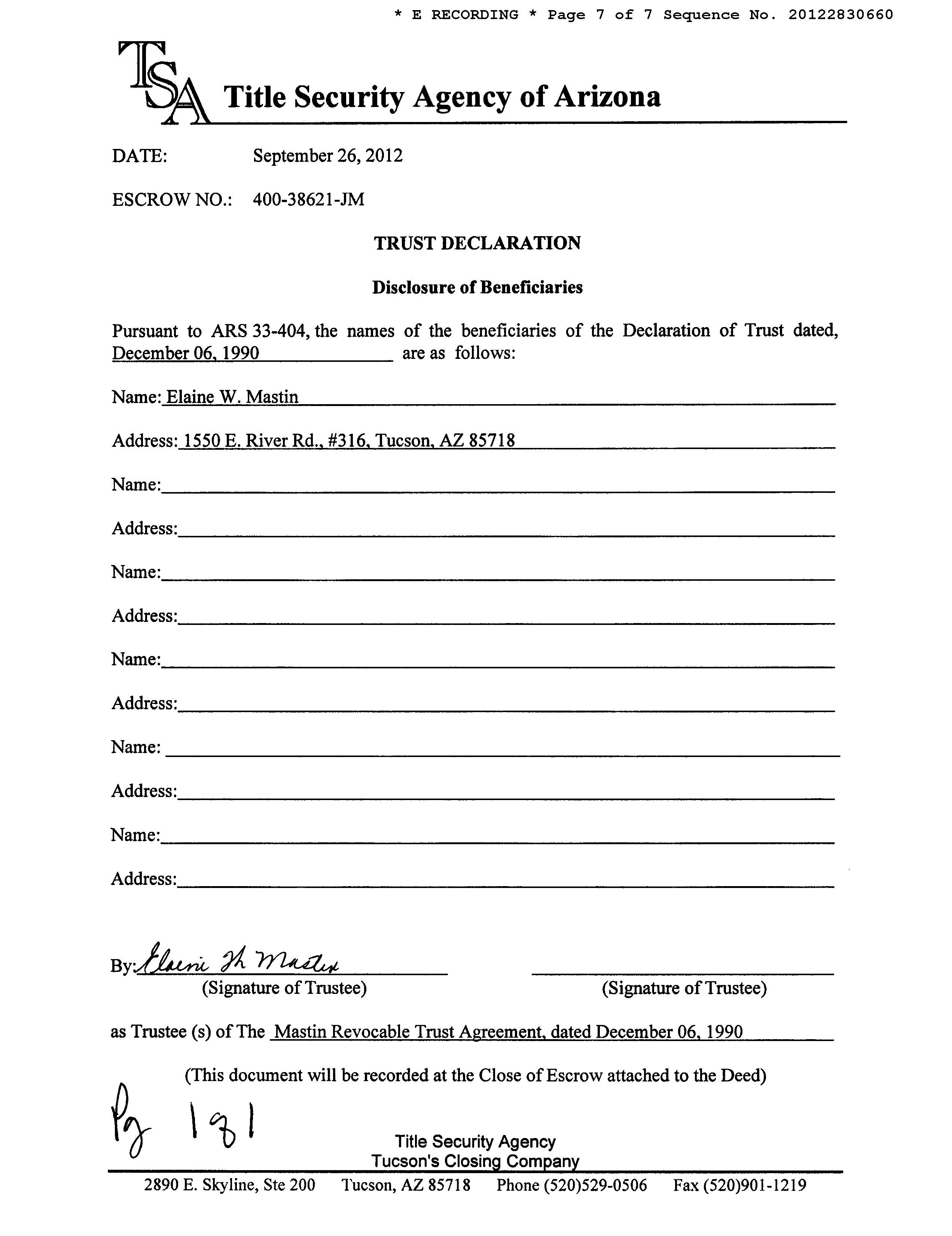 Seller Name : Mastin Trust