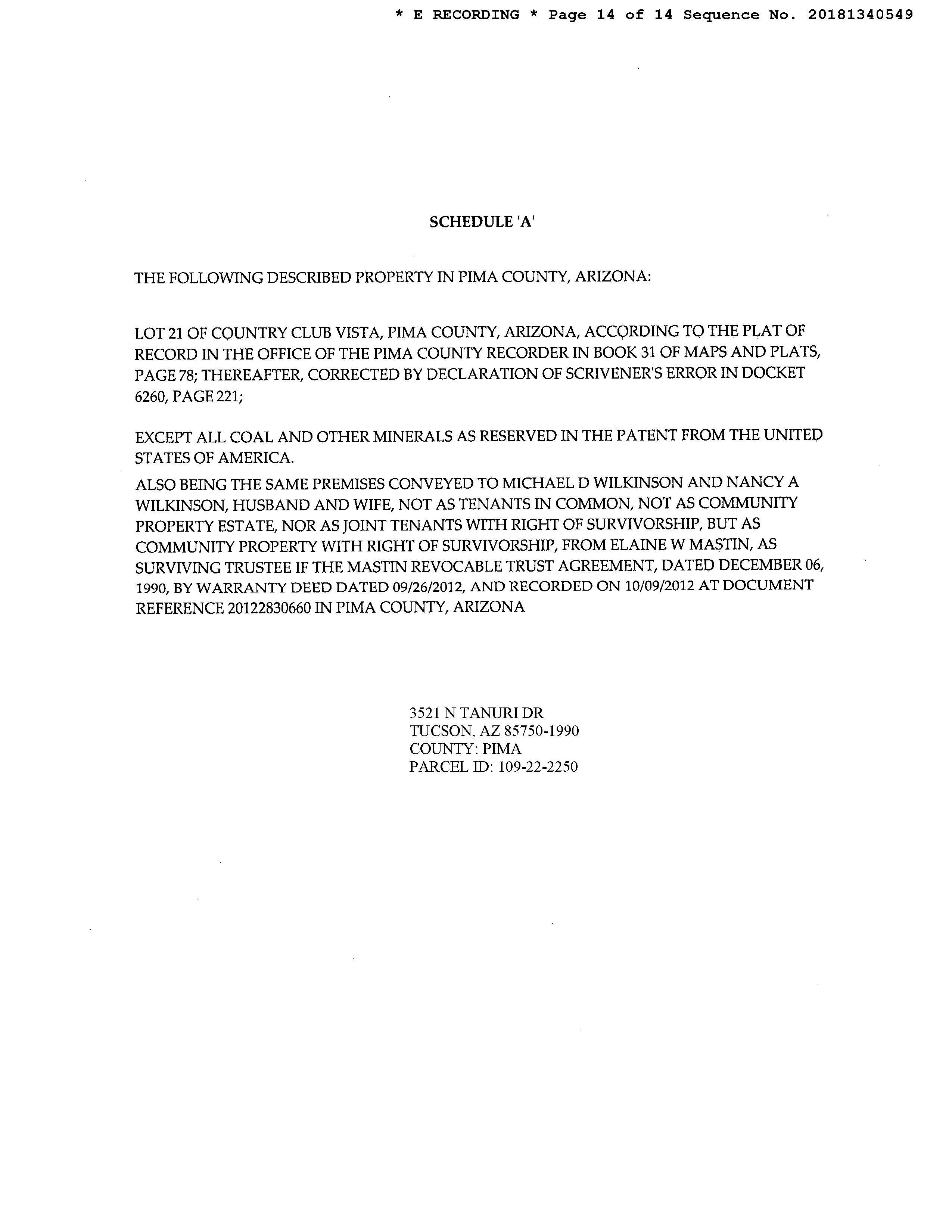 Owner Name : Wilkinson Michael D / Wilkinson Nancy A