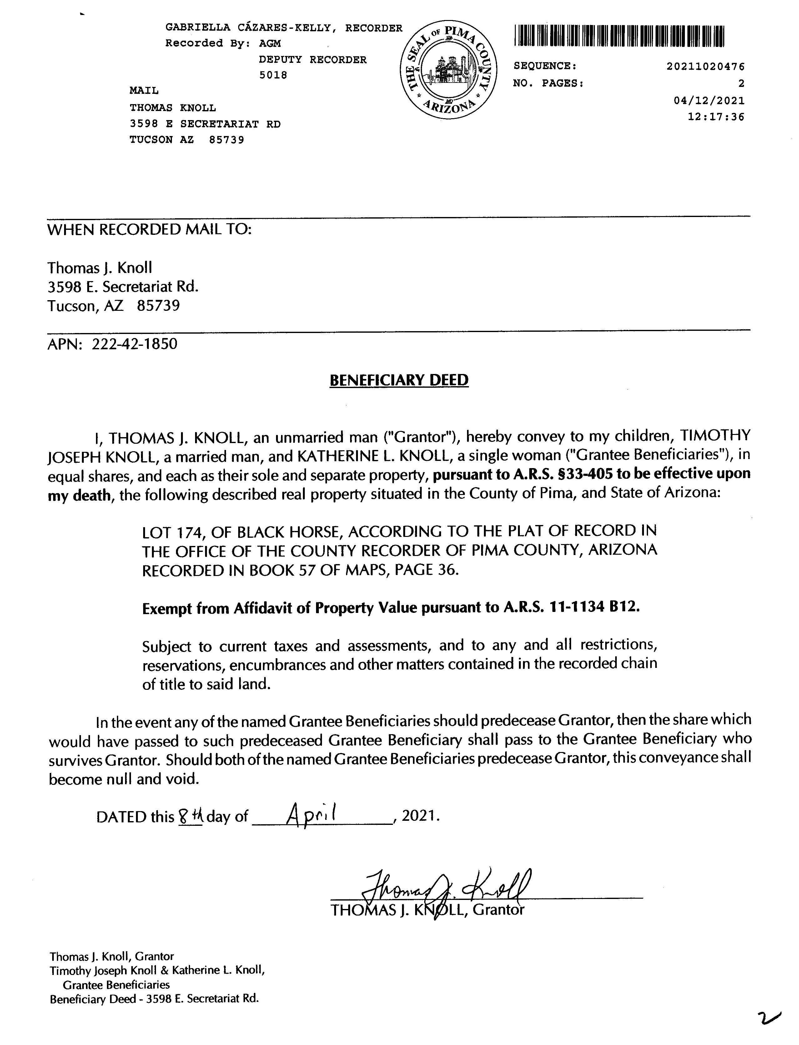 Mailing Address : 3598 E Secretariat Rd, Tucson AZ 85739-8347 R060