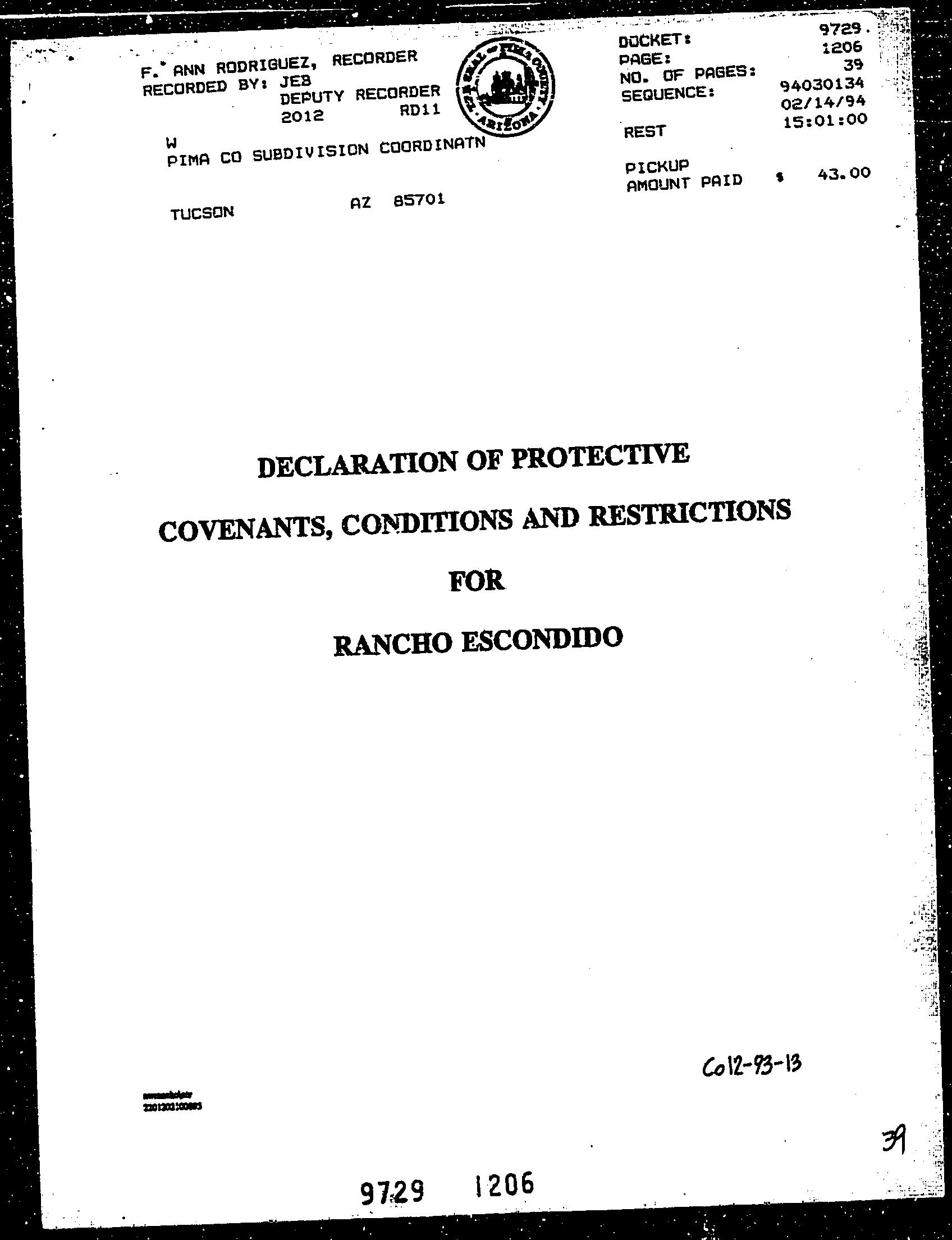 Owner Name : Schultz Geoffrey Subdivision : Escondido Rho
