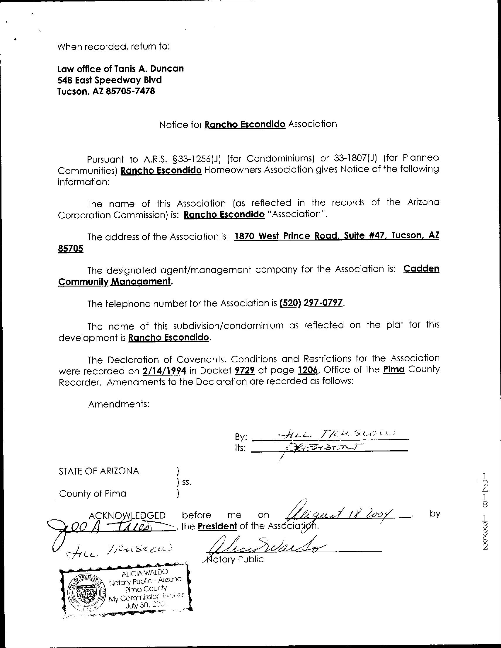 Mailing Address : 3657 W Camino De Talia, Tucson AZ 85741-1155 C011
