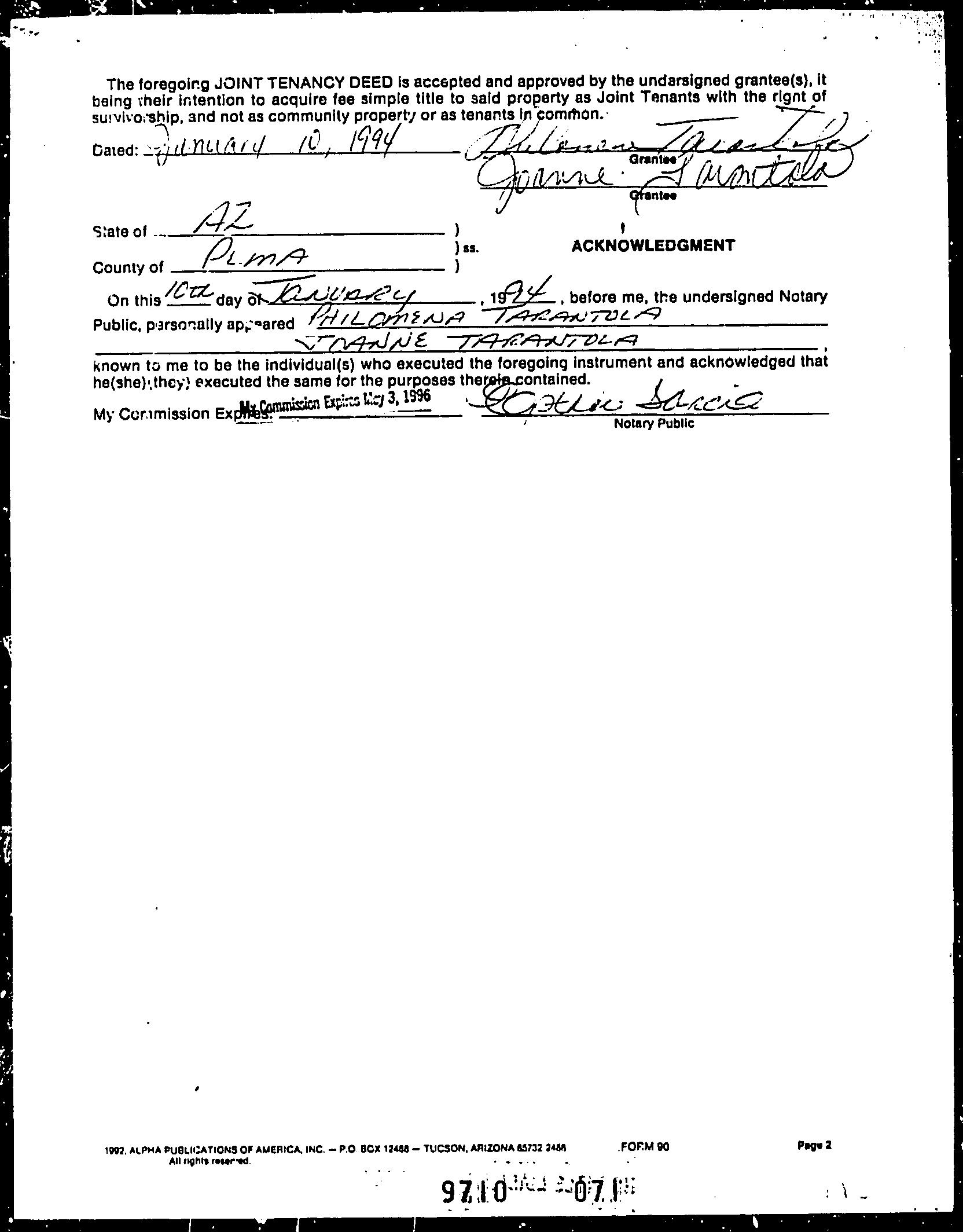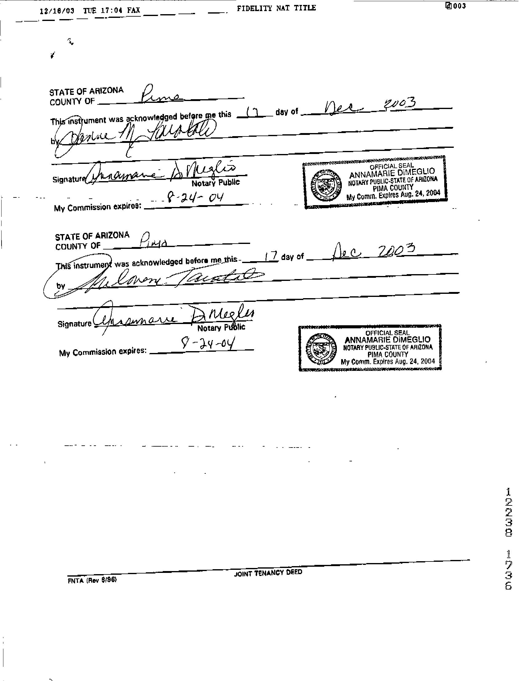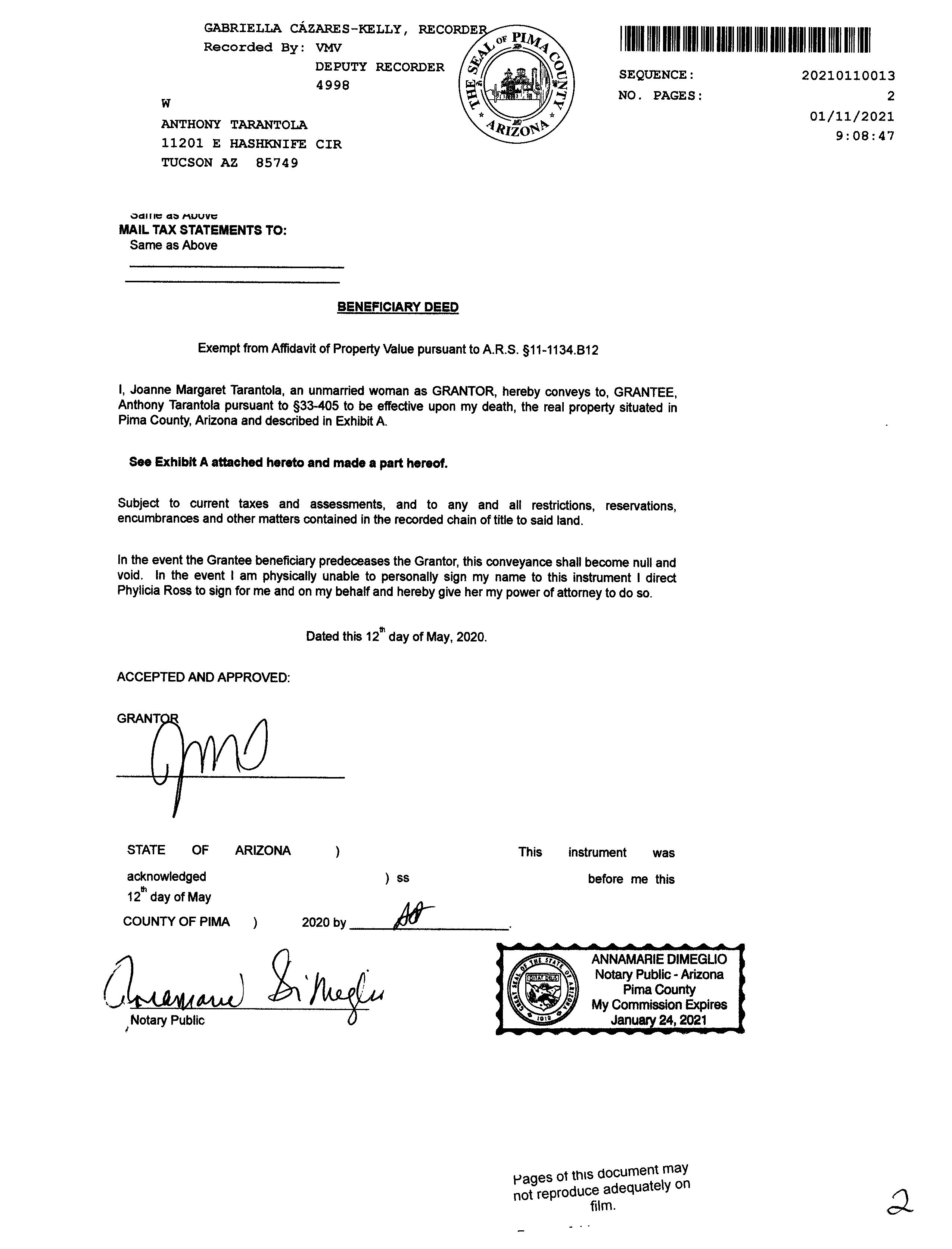 Owner Name: Tarantola Joanne Margaret / APN / Alternate APN: 205-37-3940 / Deed Type: Joint Tenancy Deed