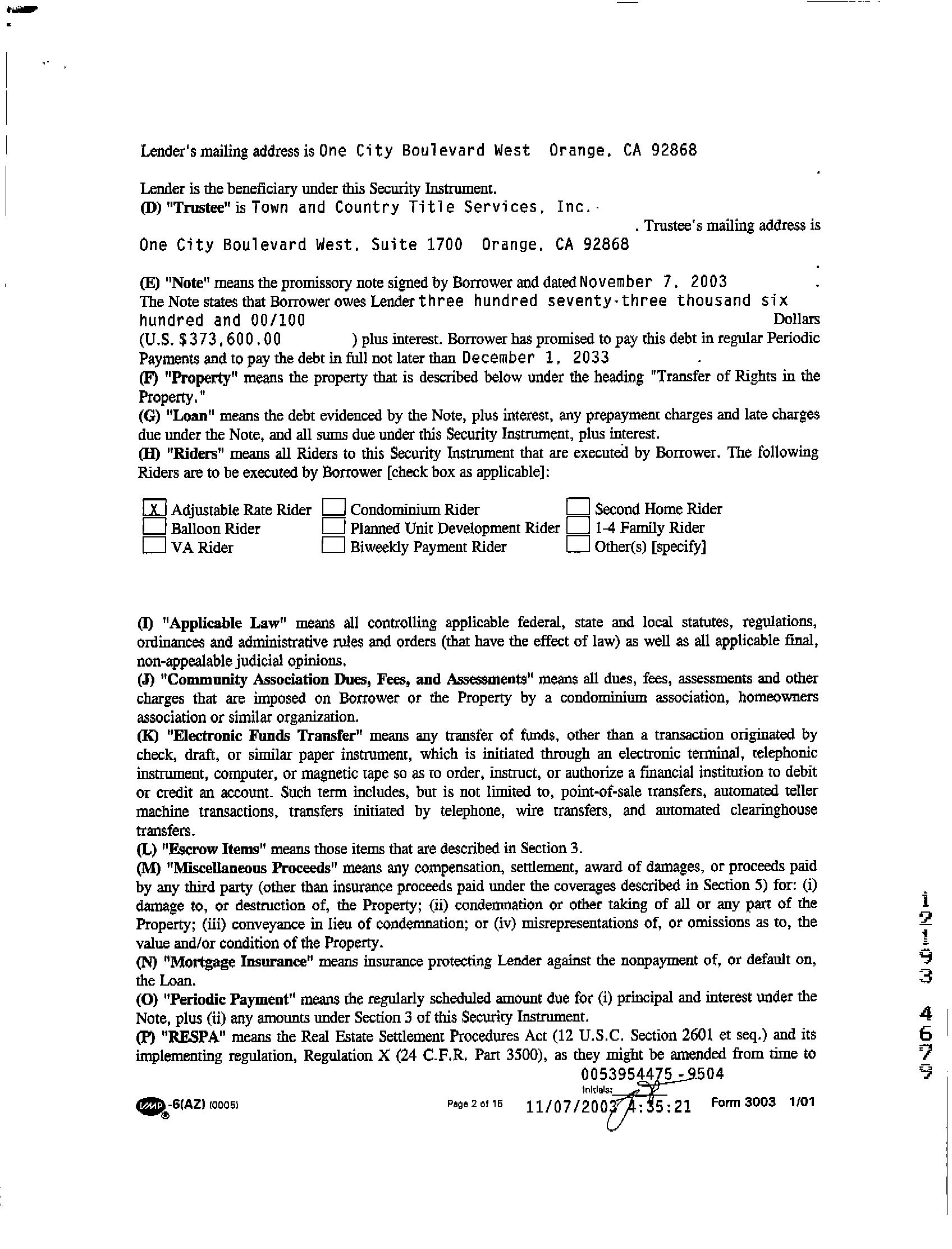 Sale Date : 03/00/2005