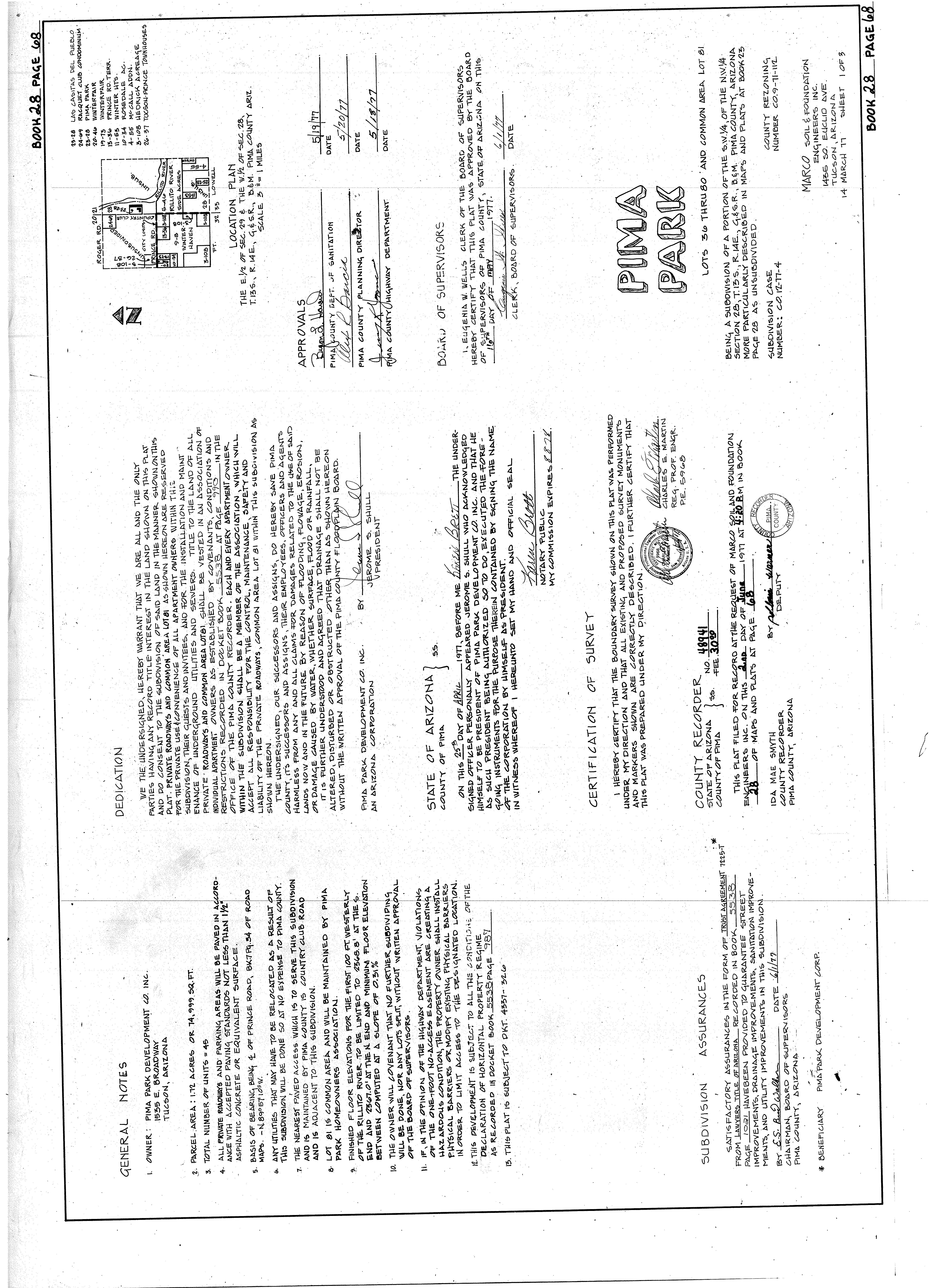 PIMA, AZ Document:SUBDIVISION_MAP 28.68 Page:1 of 3 Printed on:7/13/2023 2:48 PM Branch :FC0 User :JSTI