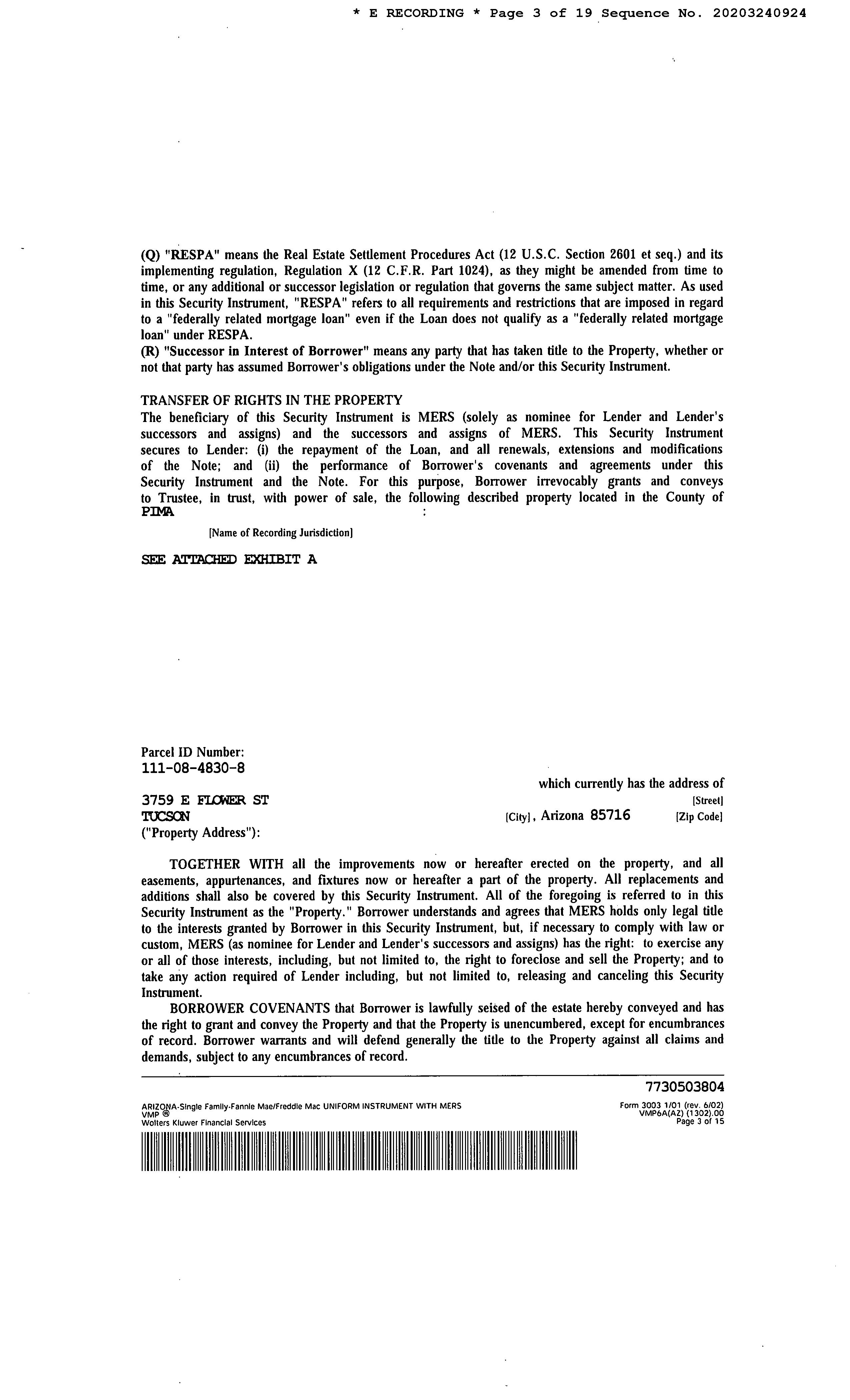 Mailing Address : 3759 E Flower St, Tucson AZ 85716-2319 C004