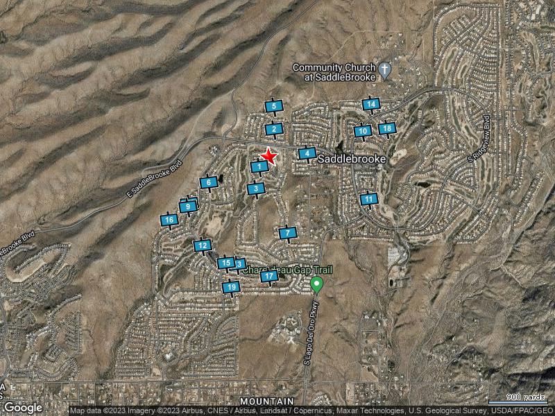 Name: Underwood Patricia Trust /Underwood Patricia APN / Alternate APN: 305-86-092 / Deed Type: Warranty Deed Land Use: Sfr Subdivision / Tract: Saddlebrooke 24 / Lot Size: 9,583 Year Built / Eff: 2000 / Rec. Date / Price: 04/05/2023 / $650,000 Living Area: 2,377 # of units: Document #: 24658 Bedrooms: Pool: Total Tax Value: $376,298 Bath(F/H): / #3 38126 S Desert Highland Dr Tucson Az 85739 Owner Name: Block Cherri M / APN / Alternate APN: 305-79-038 / Deed Type: Warranty Deed Land Use: Sfr Subdivision / Tract: Saddlebrooke 25 / Lot Size: 8,669 Year Built / Eff: 1999 / Rec. Date / Price: 08/15/2022 / $514,200 Living Area: 2,391 # of units: Document #: 88933 Bedrooms: Pool: Total Tax Value: $328,338 Bath(F/H): / #4 63735 E Edgeview Ln Tucson Az 85739