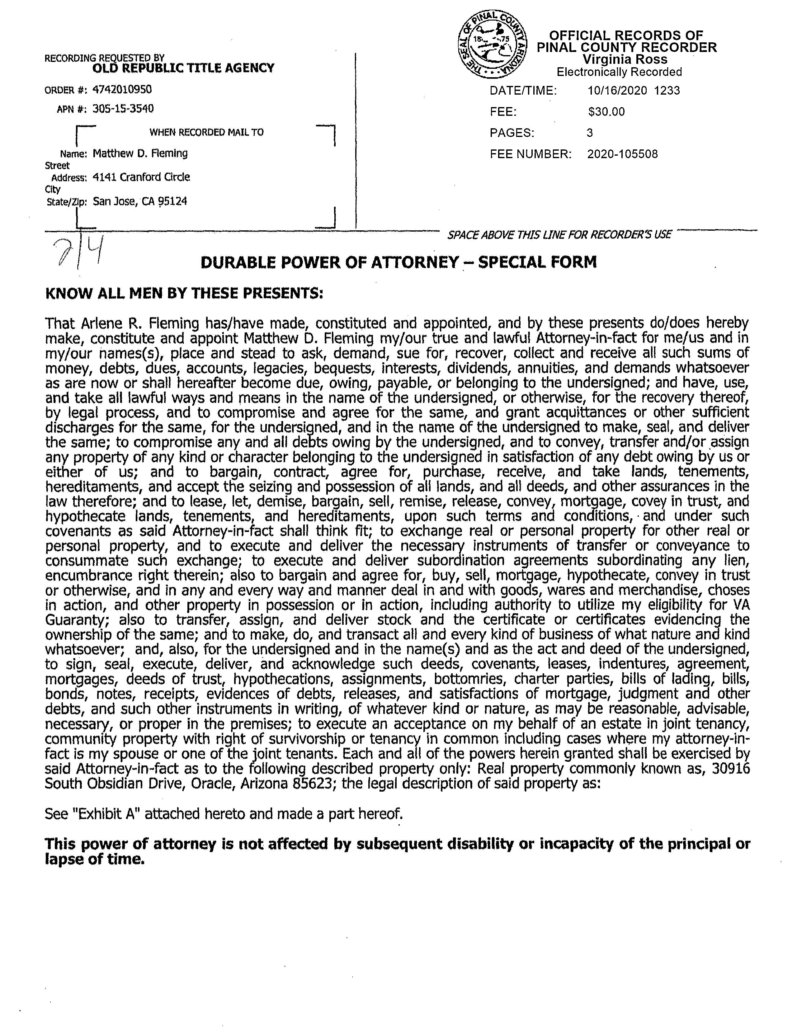 Mailing Address : 37656 S Terrace Park Dr, Tucson AZ 85739-2211 R132