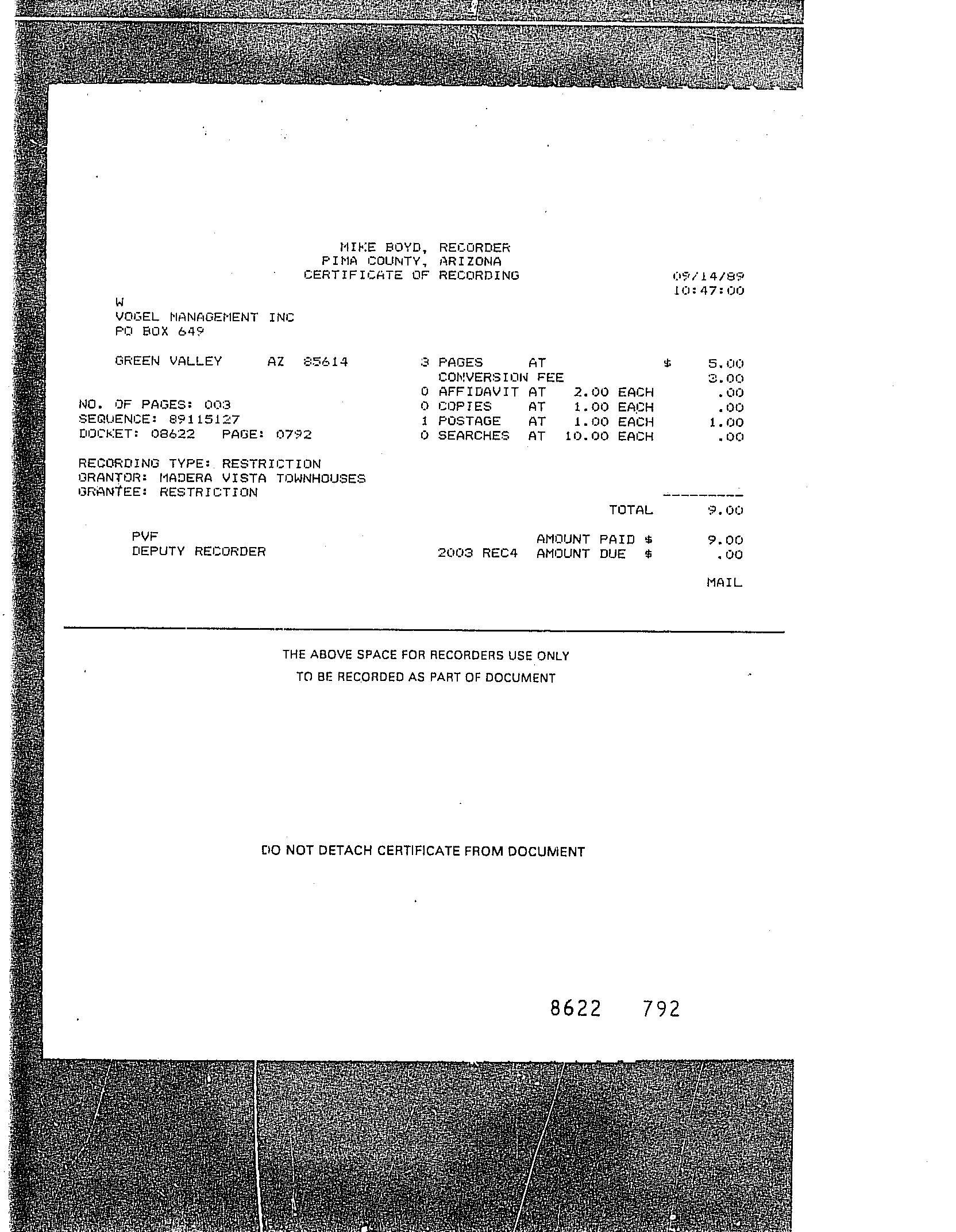 Mailing Address : 377 S Avenida De Las Sabinas, Green Valley AZ 85614-4702 C046