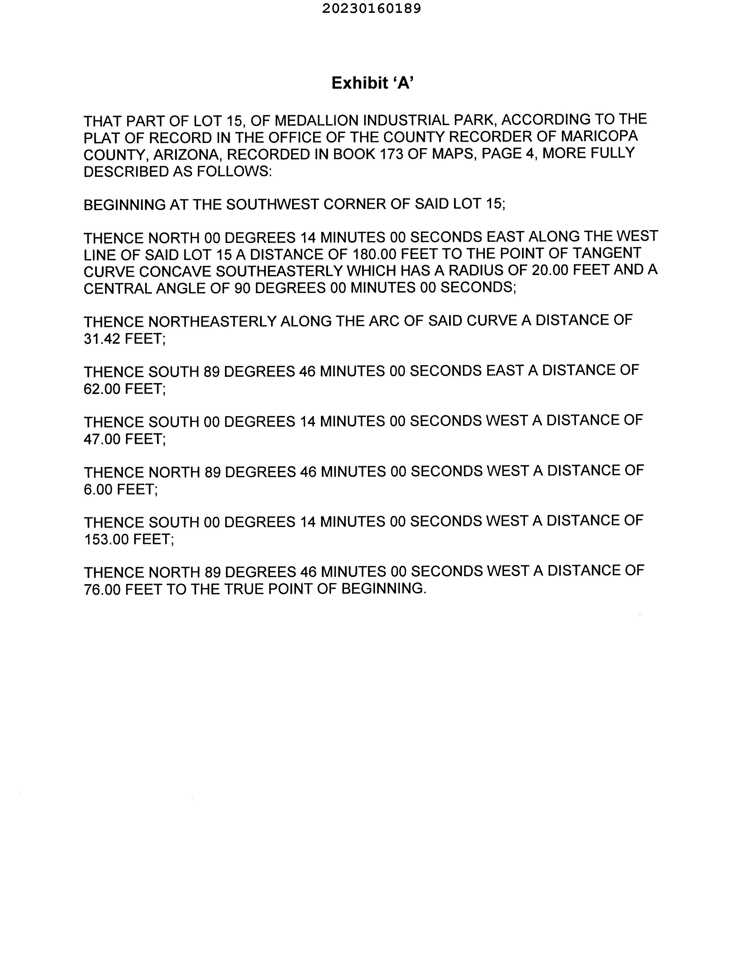 Legal Description : Lot 15 Medallion Industrial Park Per Mcr 173-4 That Pt Of Lot 15 Daf Beg Sw Cor Sd Lot 15 Th N Alg W Ln Sd Lot 180f To Pt Of 20f Rad Tan Cur Conc Sely Th Nely Alg Arc Of Sd Cur 31.42f Th E 62f Th S 47f Th W 6f Th S 153f Th W 76f To Tpob