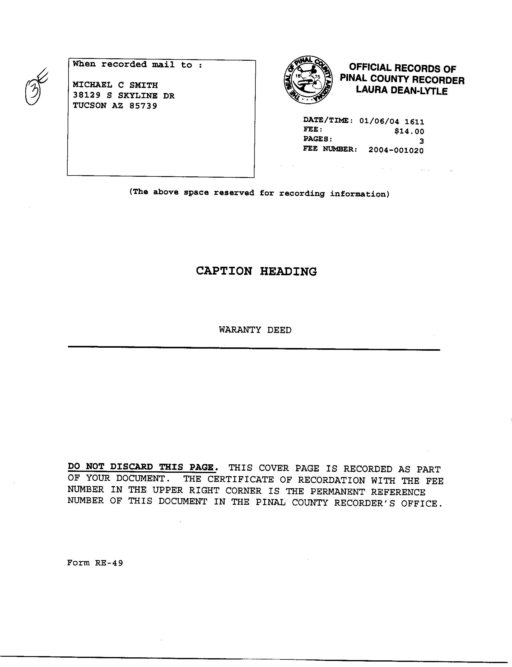Mailing Address : 38129 S Skyline Dr, Tucson AZ 85739-1276 R143