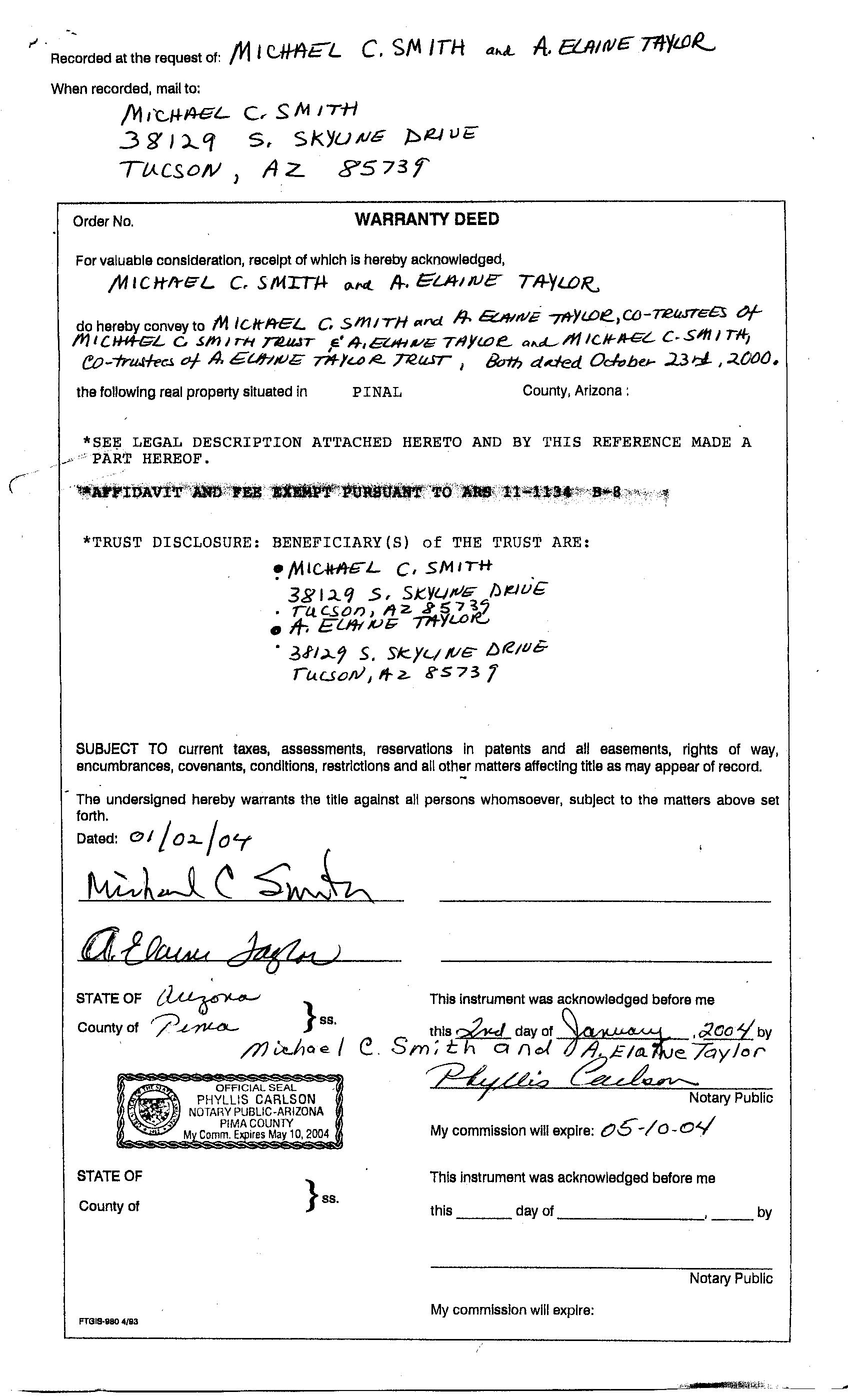 Crest Dr Tucson Az 85739 Owner Name: Hufault C A & D S Trust /Hufault Diane S & Craig A
