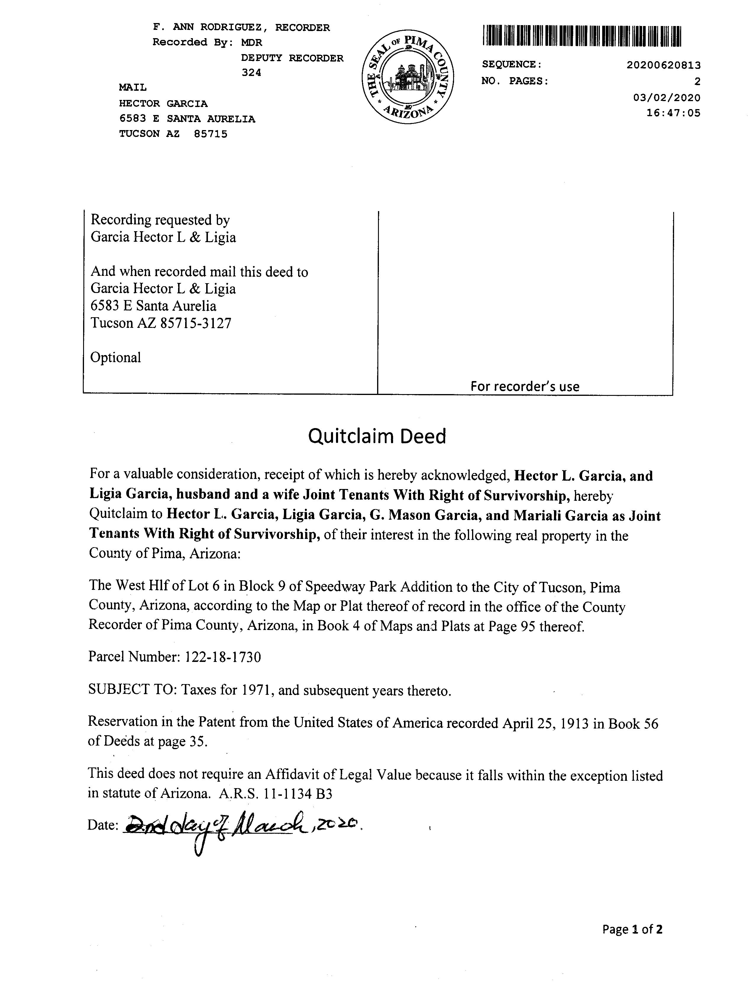 Owner Name : Garcia Hector L & Ligia / Garcia G Mason & Mariali