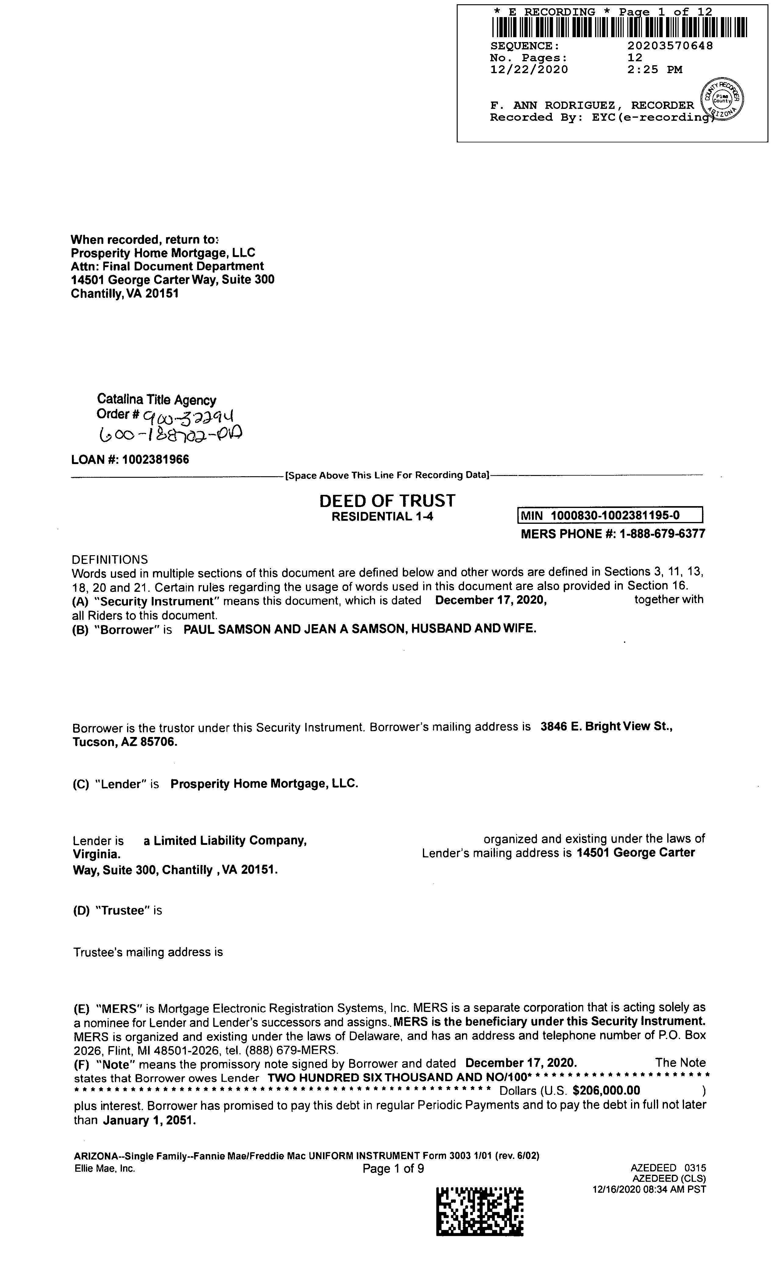 Mailing Address : 3846 E Bright View St, Tucson AZ 85706-4988 C023