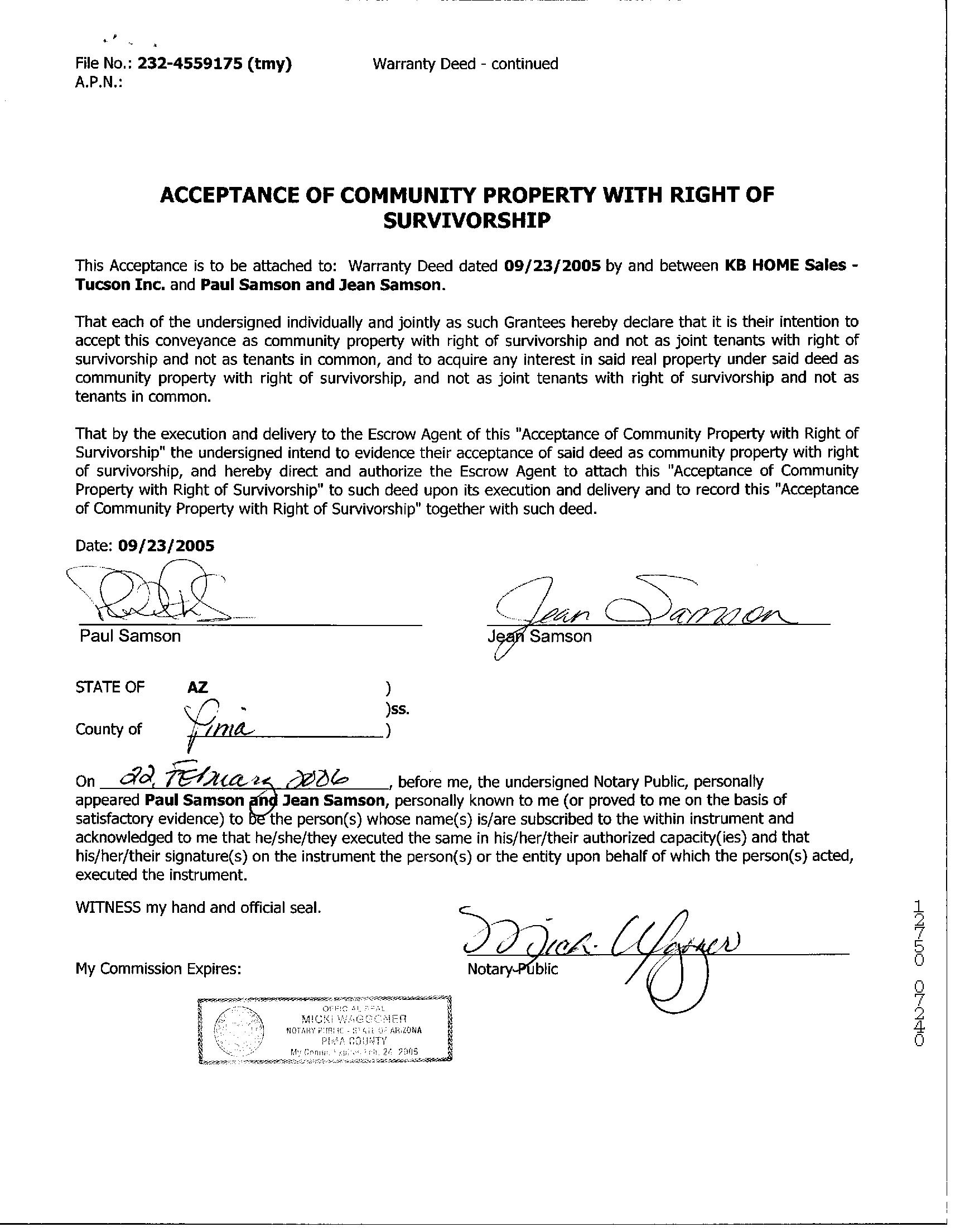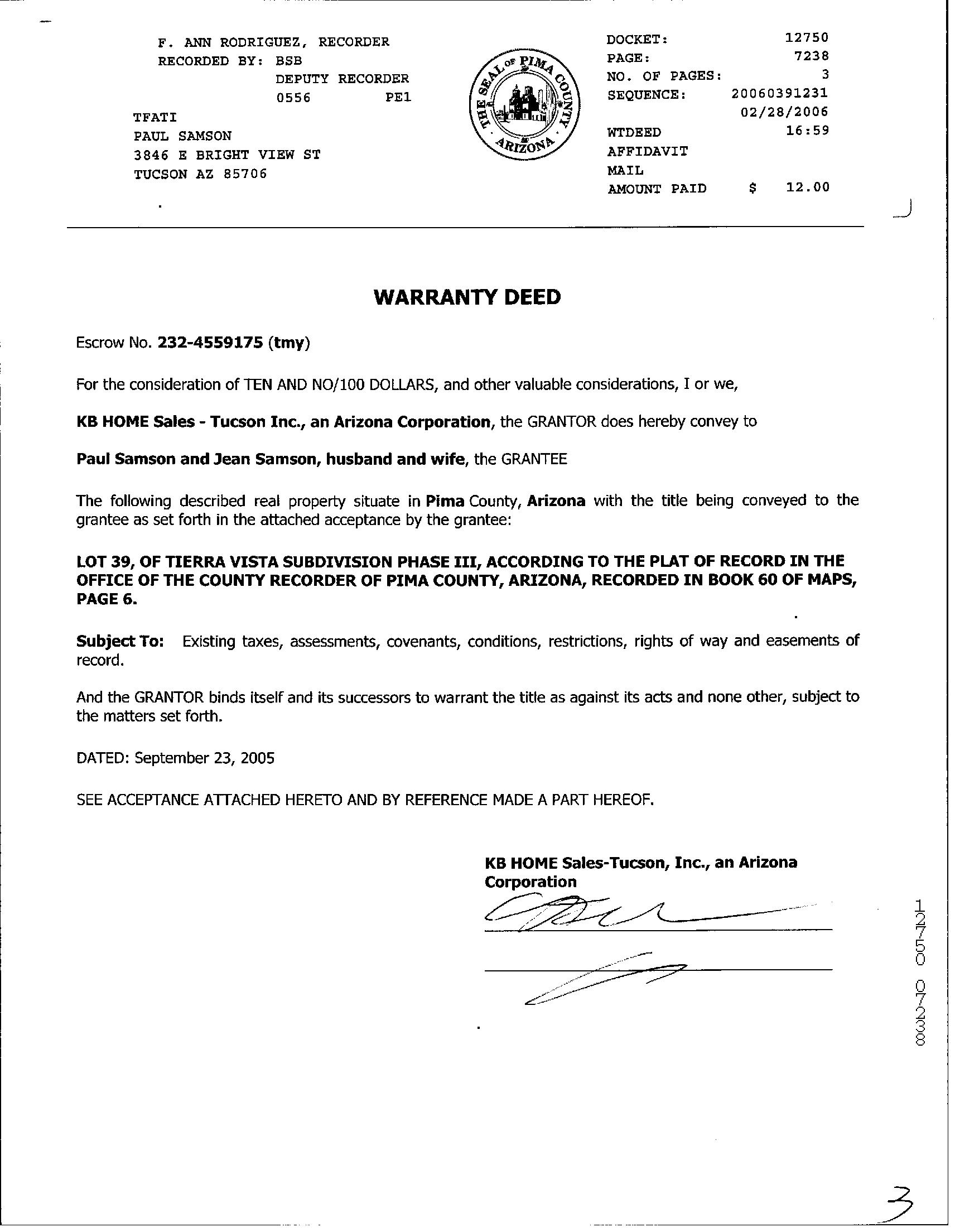 Recording/Sale Date : 02/28/2006 / 09/23/2005