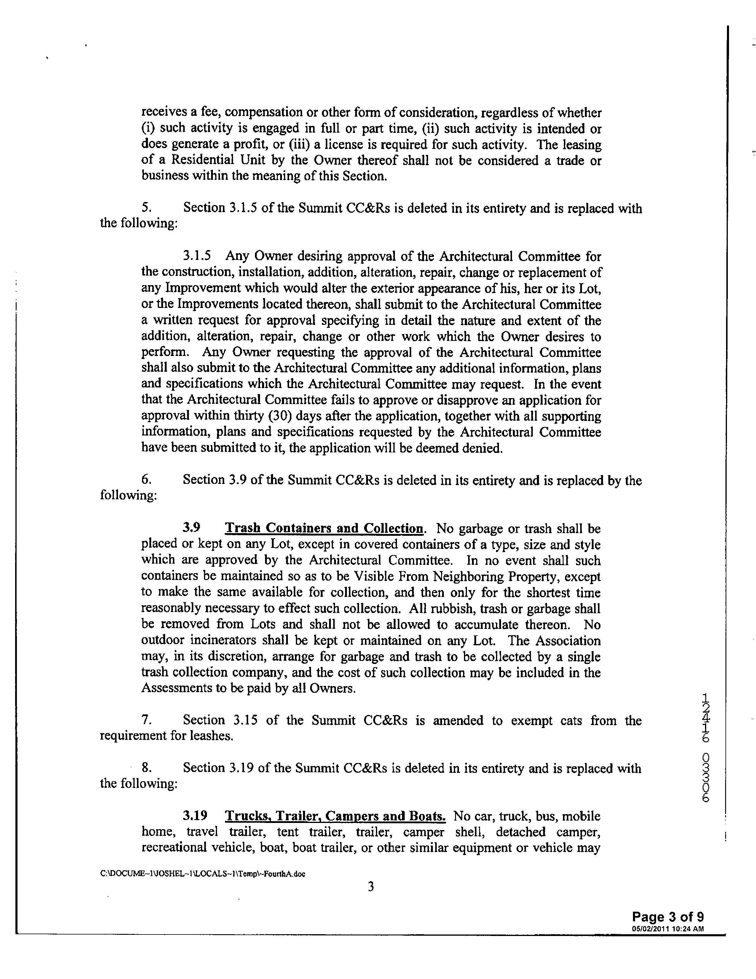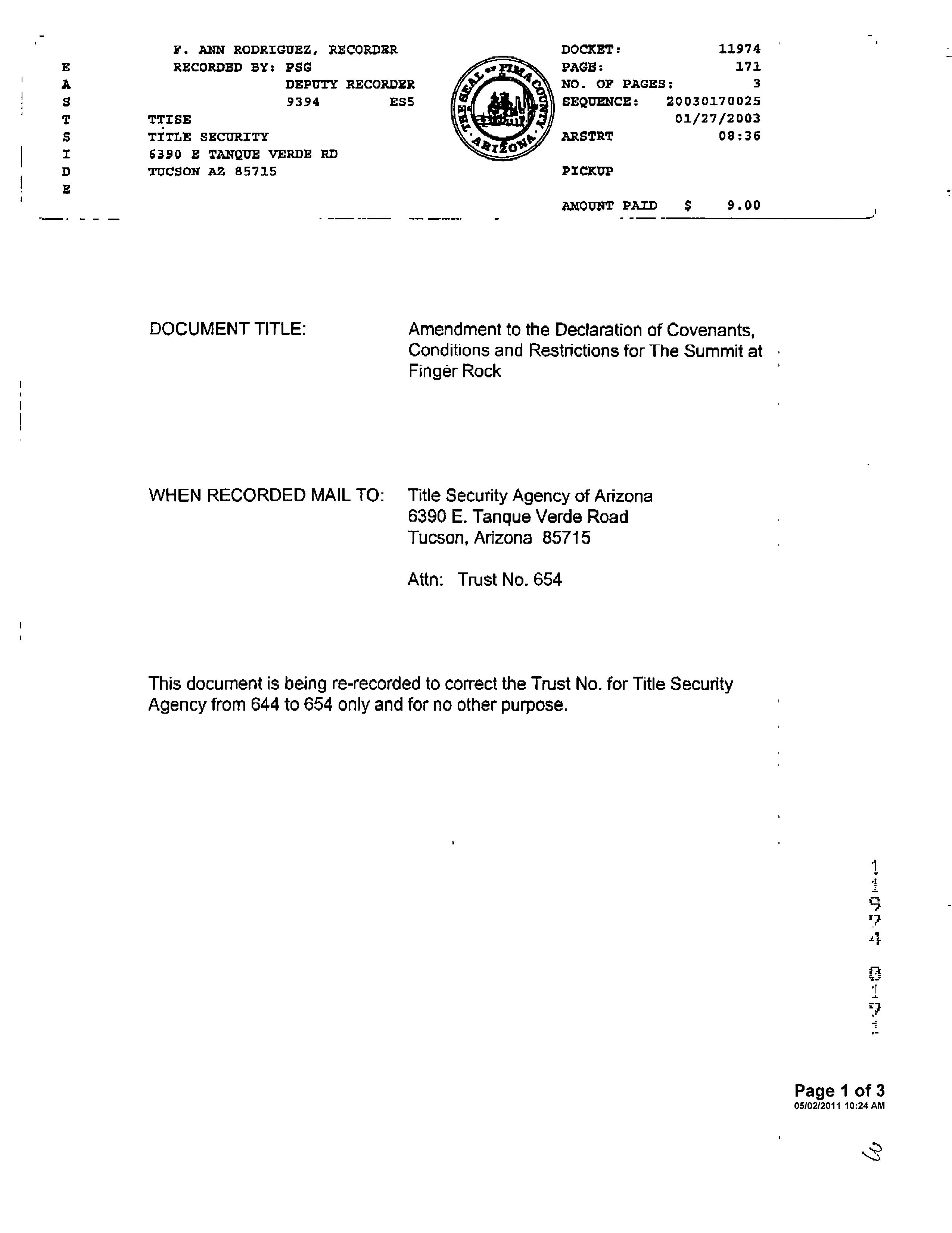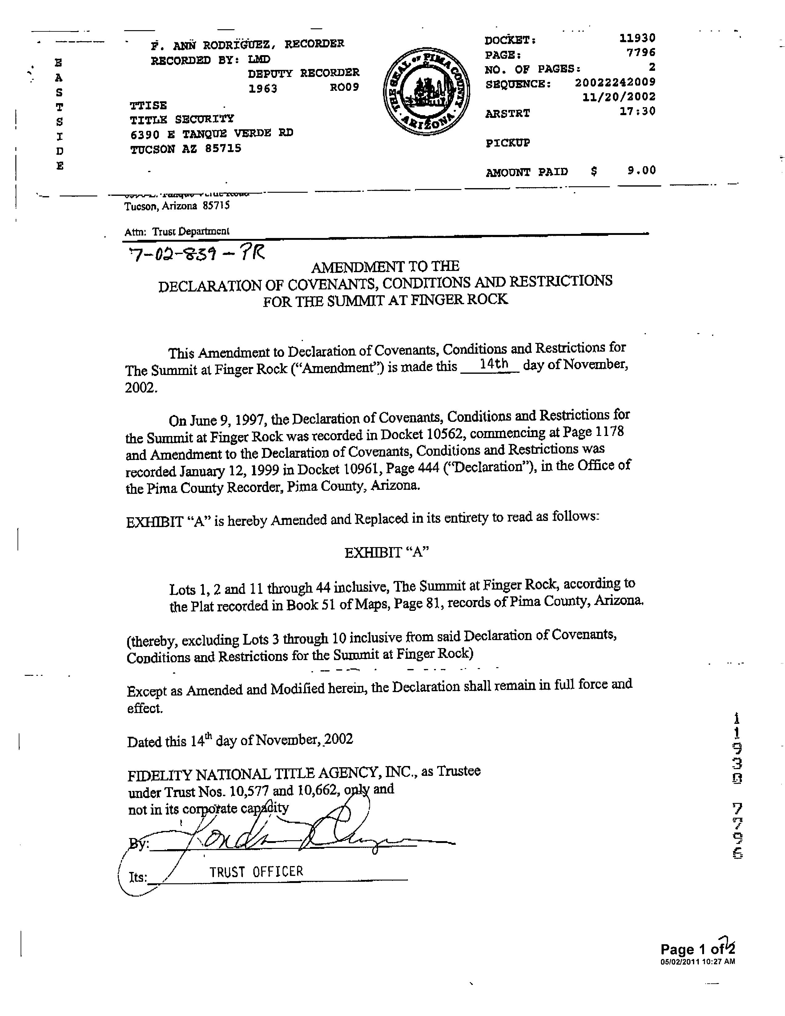 ConditionsCovenants,&Restrictions Thank you for the opportunity to be of service. Restrictions indicating a preference, limitation or discrimination based on race, color, religion, sex, handicap, familial status, or national origin are hereby deleted to the extent such restrictions violate 42 USC 3604(c). This information is furnished without fee and without benefit of a complete title search. No liability is assumed by First American Title or Title Security. If it is desired that liability be assumed, you may apply for a policy of title insurance with First American Title Insurance Company.