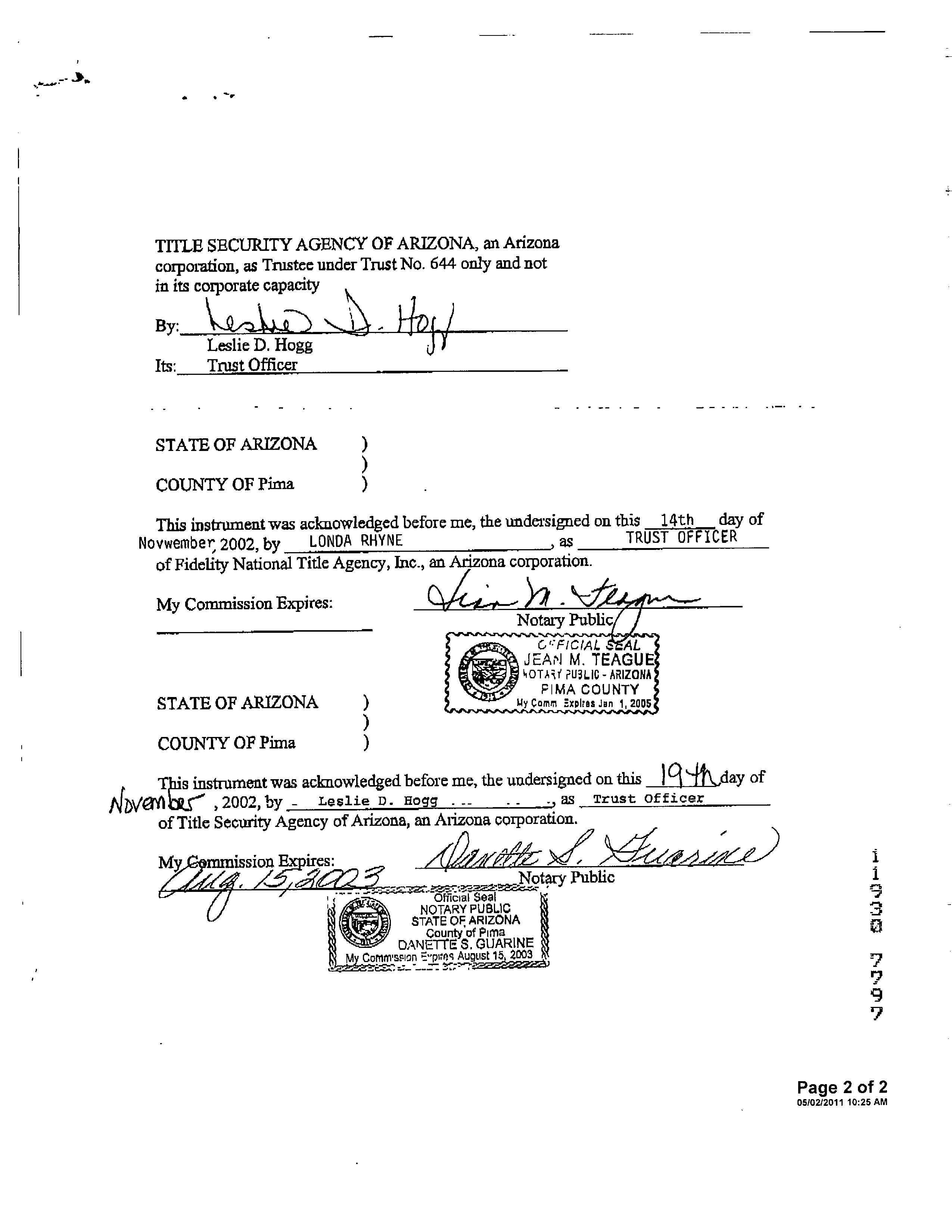 PIMA, AZ Document:DED WAR 12030.7325 Page:2 of 2 Printed on:8/12/2022 11:07 AM Branch :FC0 User :JSTI