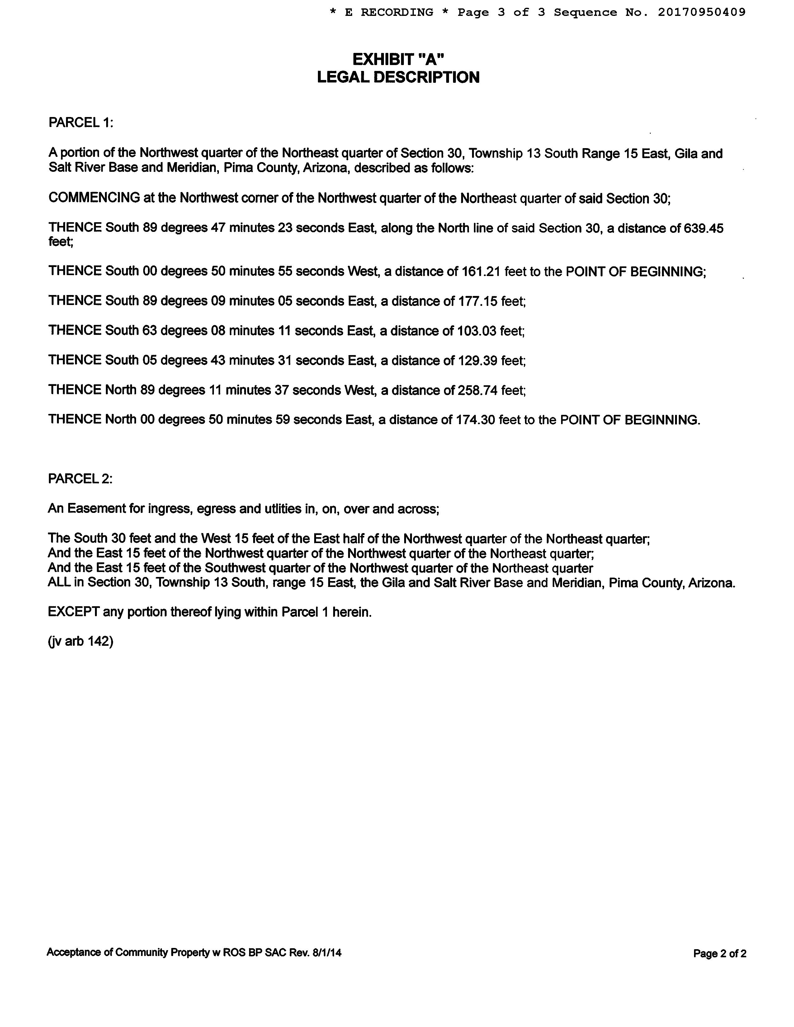 Legal Description : Ptn S174.30' N335.51' Wly 280.18' E2 Nw4 Ne4 1.09 Ac Sec 30-13-15