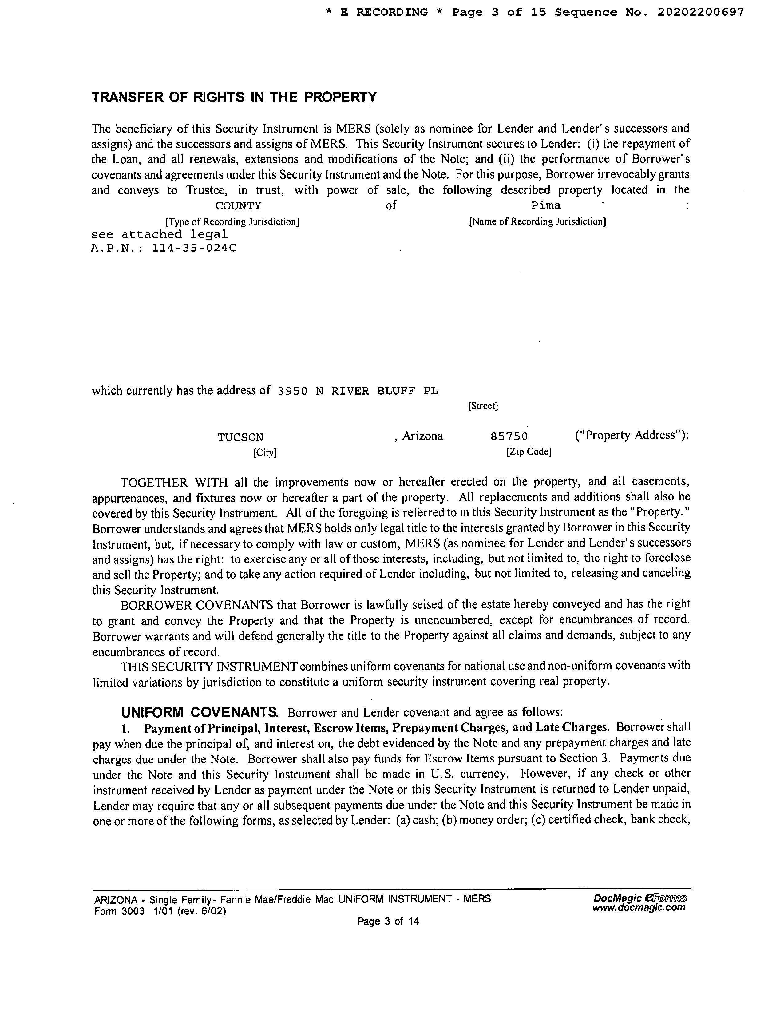 Mailing Address : 3950 N River Bluff Pl, Tucson AZ 85750-2057 C043