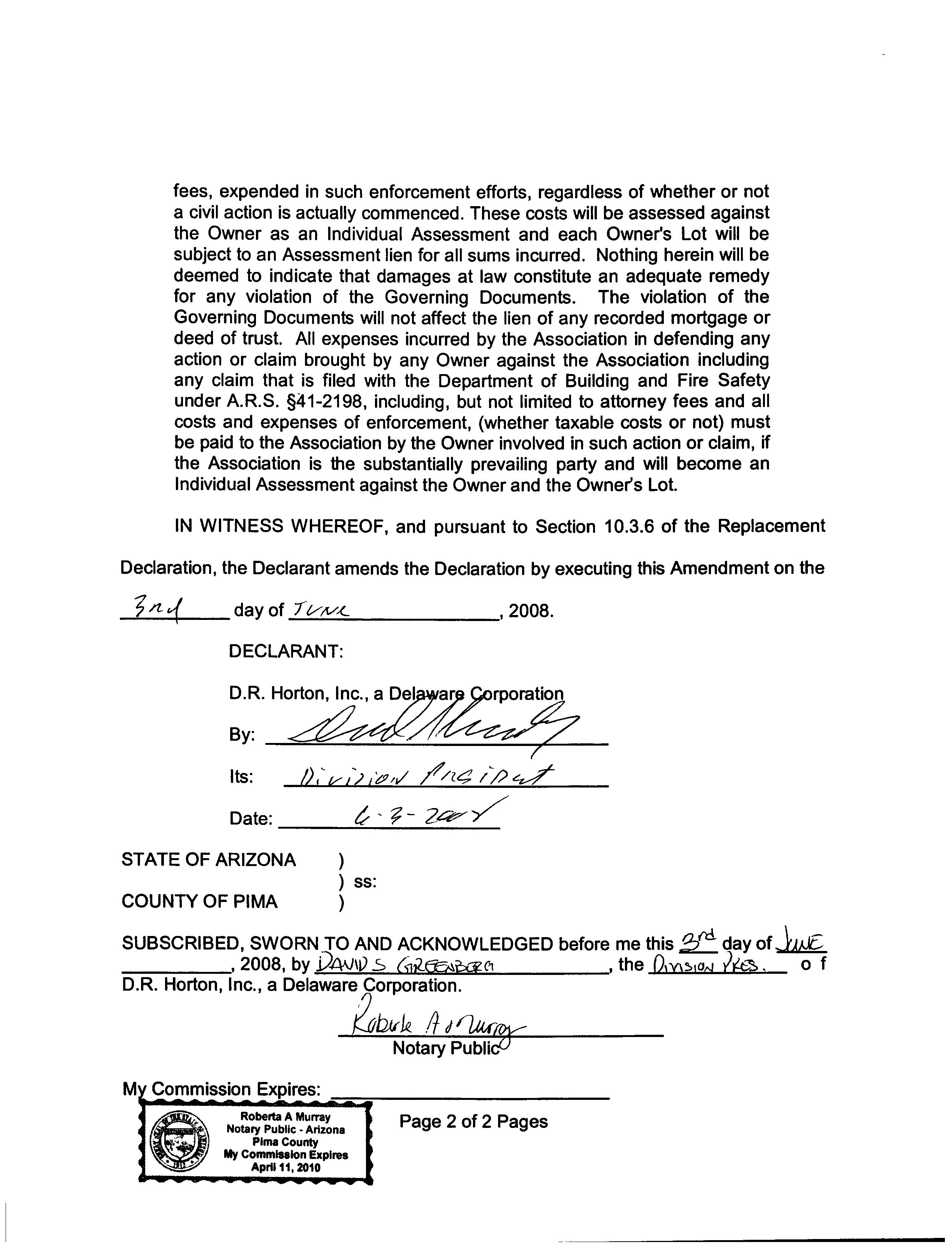 PINAL (PL), AZ Document:RES AMD 2008.53515 Page:2 of 2 Printed on:4/11/2023 11:53 AM Branch :FC0 User :JSTI